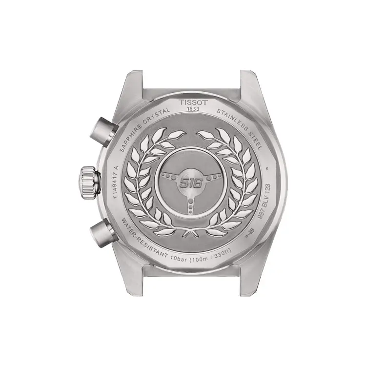 Tissot PR516 Chronograph T149.417.11.041.00 mang tinh thần đua xe thập niên 60 vào thiết kế hiện đại và chuẩn xác. Vỏ thép không gỉ 316L 40mm vừa mạnh mẽ vừa tinh tế, mặt số xanh lam với các mặt phụ tương phản gợi nhớ di sản thể thao của Tissot.