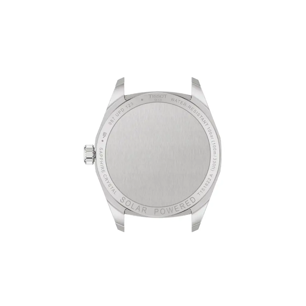 Tissot PRC 100 Solar 34 mm (ref. T151.822.22.031.00) là mẫu đồng hồ nữ hiện đại kết hợp giữa thiết kế thanh lịch và công nghệ năng lượng mặt trời tiên tiến. Vỏ 34 mm bằng thép không gỉ 316L phủ PVD màu vàng được hoàn thiện với vành bezel 12 cạnh đặc trưng, tạo điểm nhấn độc đáo. Trang bị kính sapphire chống trầy xước và khả năng chống nước 100 m (10 ATM).