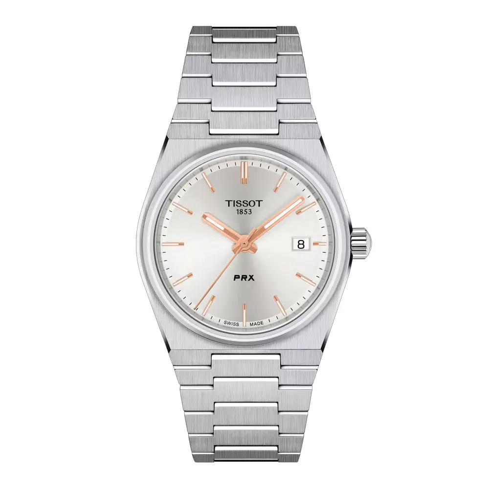 Tissot PRX 35mm T137.210.11.031.00 là sự kết hợp hoàn hảo giữa thẩm mỹ cổ điển và nghệ thuật chế tác đồng hồ hiện đại. Mẫu đồng hồ này tiếp nối thiết kế biểu tượng từ thập niên 1970 và mang đến vẻ đẹp thanh lịch vượt thời gian trong một thiết kế nhỏ gọn.