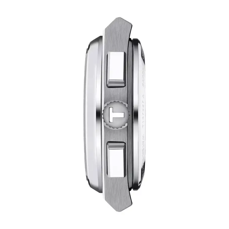 Tissot PRX Automatic Chronograph T137.427.11.011.01 là mẫu đồng hồ thể thao nhưng vẫn thanh lịch, kết hợp tay nghề chế tác Thụy Sĩ chính xác với thiết kế vượt thời gian. Vỏ tròn bằng thép không gỉ đường kính 42 mm được bảo vệ bởi kính sapphire chống trầy xước. Mặt số màu bạc với các mặt phụ tương phản cung cấp chức năng chronograph và lịch ngày tiện dụng.