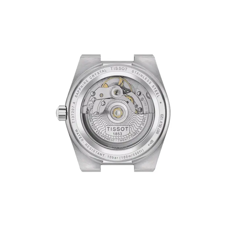 Đồng hồ trang bị bộ máy cơ Powermatic 80 với dự trữ năng lượng 80 giờ, có thể chiêm ngưỡng qua nắp lưng trong suốt bằng sapphire. Với khả năng chống nước 100 m (10 ATM), dây thép chải xước và đánh bóng cùng khóa bướm có nút bấm, Tissot PRX Powermatic 80 35mm là sự kết hợp hoàn hảo giữa vẻ đẹp cổ điển, hiệu suất hiện đại và tay nghề chế tác Thụy Sĩ đích thực.