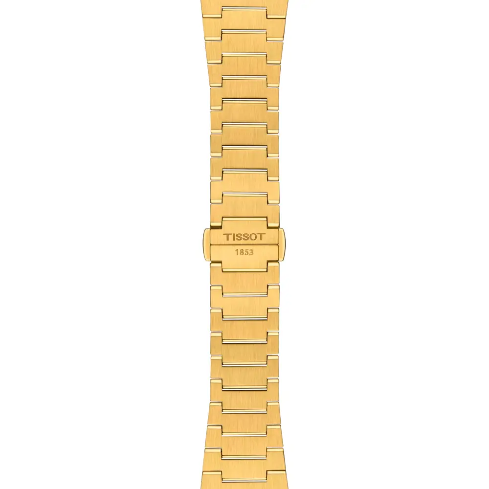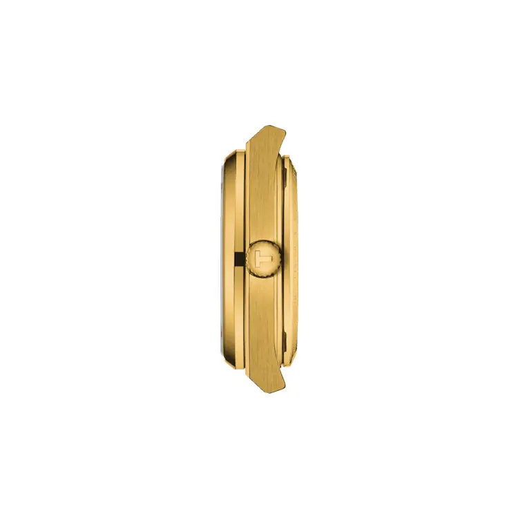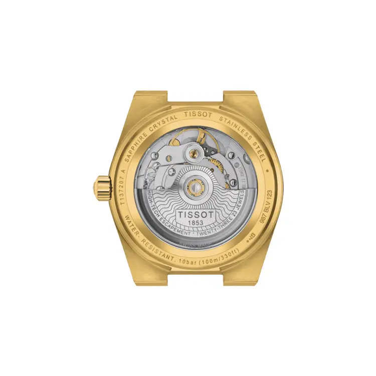 Tissot PRX Powermatic 80 35mm T137.207.33.021.00 kết hợp sự thanh lịch hiện đại với độ chính xác của chế tác đồng hồ Thụy Sĩ. Vỏ tròn bằng thép không gỉ đường kính 35 mm mạ vàng vàng được bảo vệ bởi kính sapphire bền bỉ, bên dưới là mặt số màu vàng với hoa văn tinh tế. Lịch ngày tại vị trí 3 giờ tăng tính tiện dụng cho mẫu này.