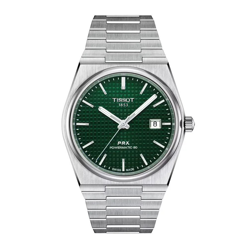 Tissot PRX Powermatic 80 40mm với mặt số xanh lục đậm là sự kết hợp hoàn hảo giữa thiết kế hiện đại và công nghệ chế tác đồng hồ Thụy Sĩ tiên tiến. Đồng hồ sở hữu vỏ thép không gỉ tròn 40 mm, được bảo vệ bởi kính sapphire chống trầy xước bền bỉ, mang lại độ bền vượt trội.