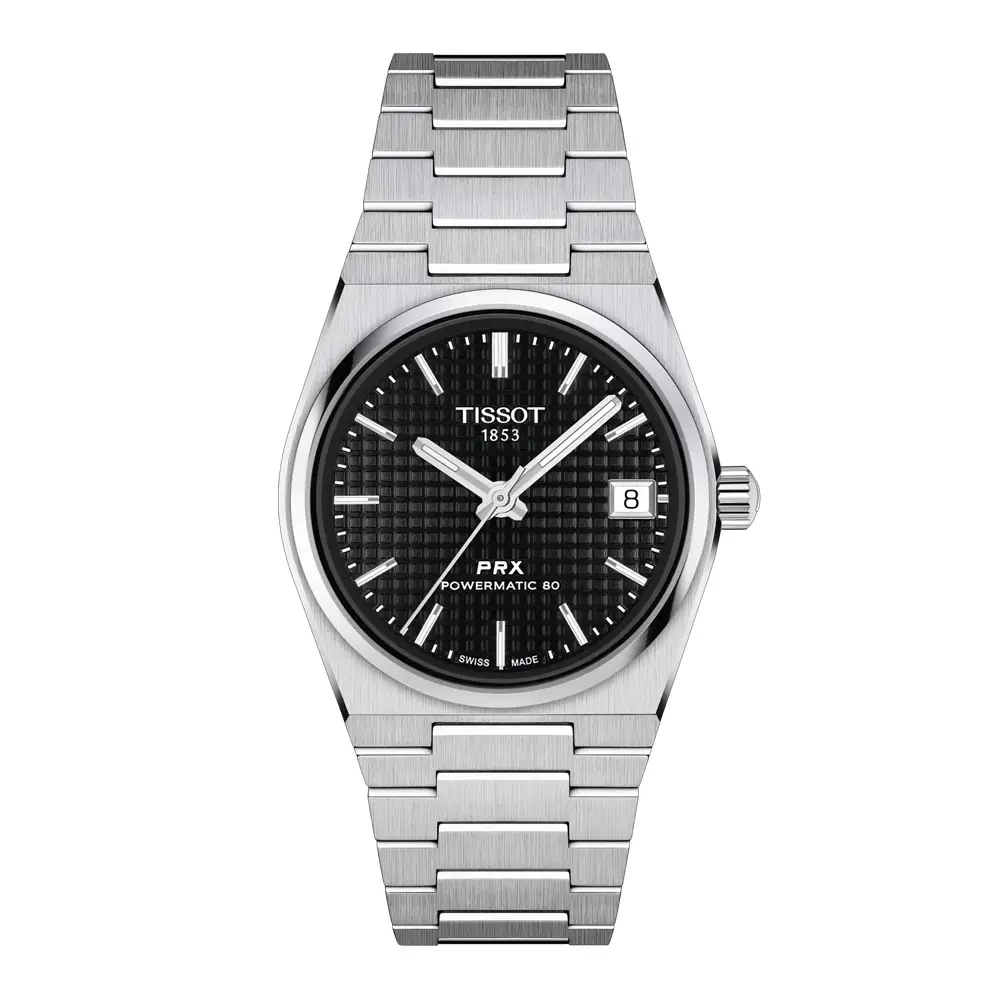 Tissot PRX Powermatic 80 phiên bản 35 mm mang phong cách biểu tượng từ thập niên 70 kết hợp cùng kỹ thuật chế tác hiện đại của Thụy Sĩ. Vỏ thép không gỉ 35 mm sang trọng cùng mặt số đen họa tiết waffle tạo nên vẻ đẹp tinh tế và độc đáo. Mặt số được bảo vệ bởi kính sapphire chống trầy và chống phản quang, giúp hiển thị rõ ràng trong mọi điều kiện ánh sáng.