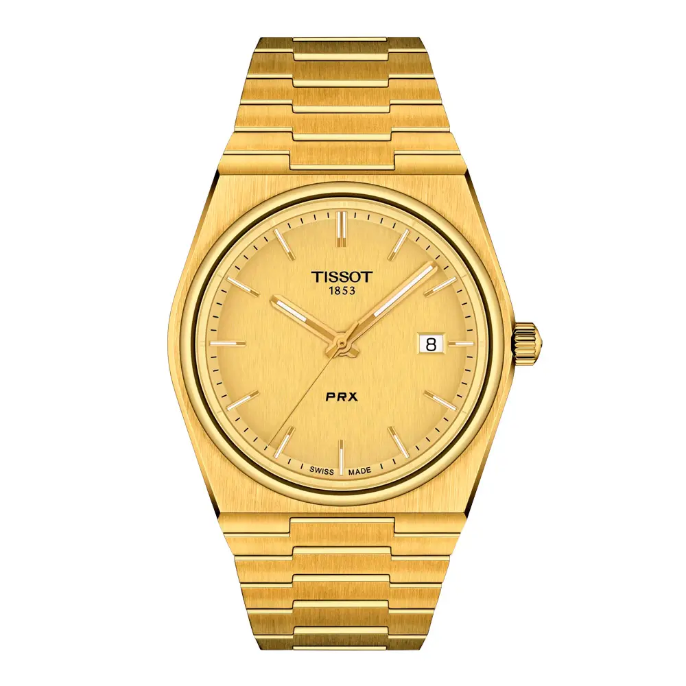 Tissot PRX Quartz 40mm phiên bản sang trọng màu vàng là sự kết hợp hoàn hảo giữa vẻ thanh lịch vượt thời gian và tính năng hiện đại. Đồng hồ sở hữu vỏ thép không gỉ tròn 40 mm phủ vàng PVD, được bảo vệ bởi kính sapphire chống trầy xước cao cấp, mang lại độ bền vượt trội.