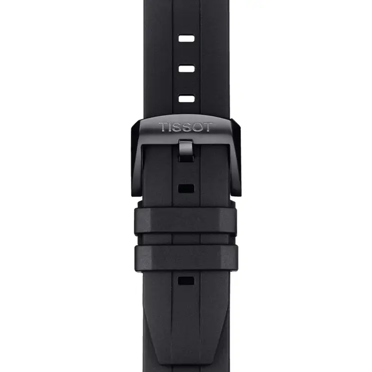 Đồng hồ đi kèm dây cao su đen với khóa gập và phần mở rộng cho thợ lặn. Tissot Seastar 1000 Chronograph là lựa chọn lý tưởng cho người tìm kiếm tính năng chuyên nghiệp, độ chính xác Thụy Sĩ và thiết kế nổi bật.