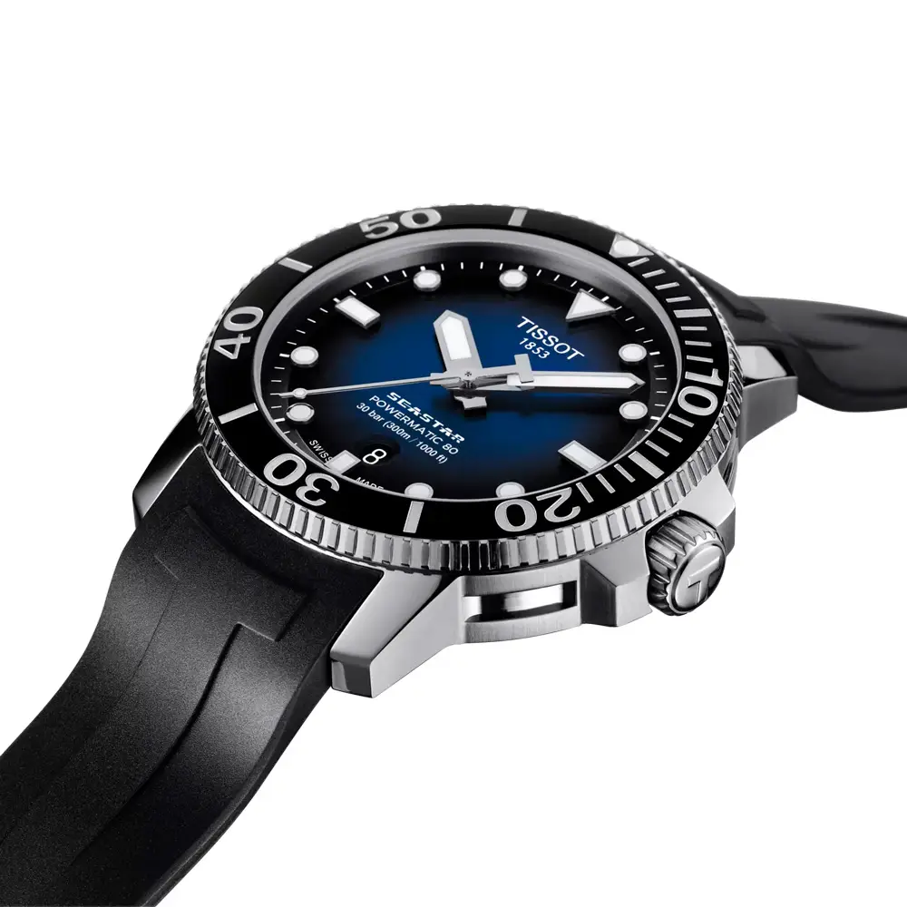 Dây cao su xanh mang lại sự thoải mái trong mọi hoạt động. Với khả năng chống nước 300 m (30 bar), Tissot Seastar 1000 Powermatic 80 T120.407.17.041.00 là lựa chọn lý tưởng cho quý ông yêu thích sự mạnh mẽ, chính xác và phong cách vượt thời gian, phù hợp cả trên cạn lẫn dưới nước.