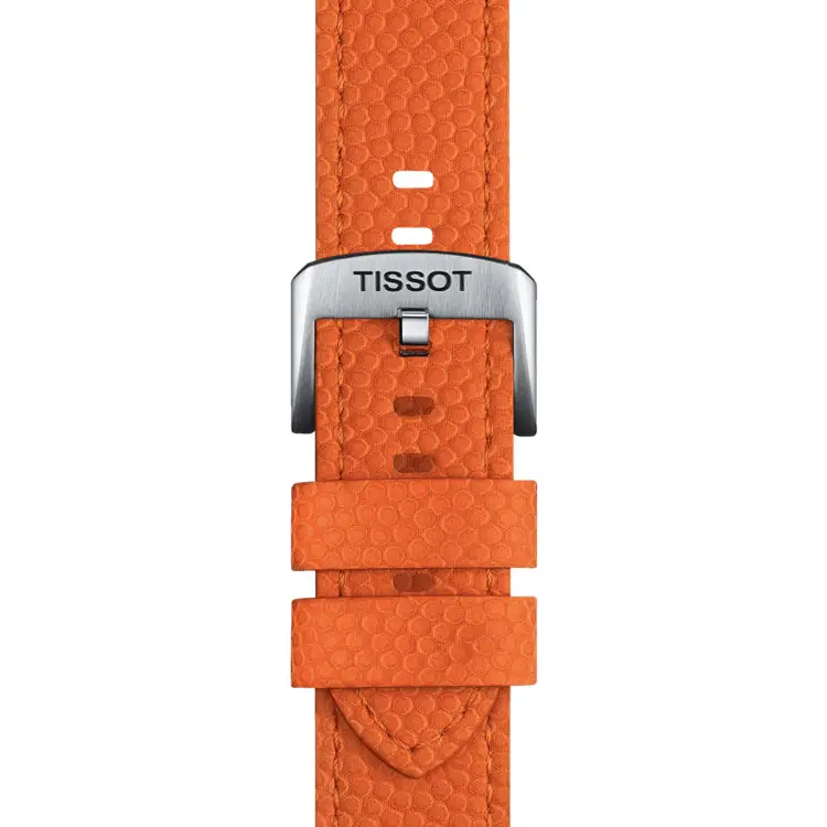 Dây đeo da màu cam với khóa chốt mang kết cấu giống bề mặt quả bóng rổ, tạo nên phong cách thể thao độc đáo. Với khả năng chống nước 30 ATM (300 m), đồng hồ phù hợp cho lặn biển và các môn thể thao dưới nước đòi hỏi cao.