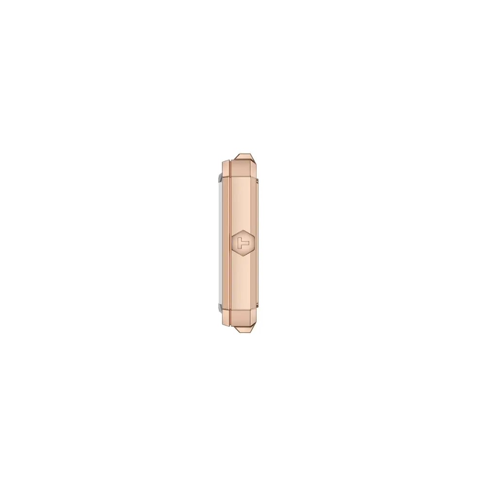Tissot SRV 30mm lấy cảm hứng từ phong cách thập niên 70 và được tinh chỉnh để phù hợp với thẩm mỹ hiện đại. Vỏ thép hình chữ nhật 30 × 21,8 mm phủ PVD vàng vàng mang lại vẻ sang trọng như trang sức. Kính sapphire và khả năng chống nước 5 bar đảm bảo độ bền trong sử dụng hằng ngày.
