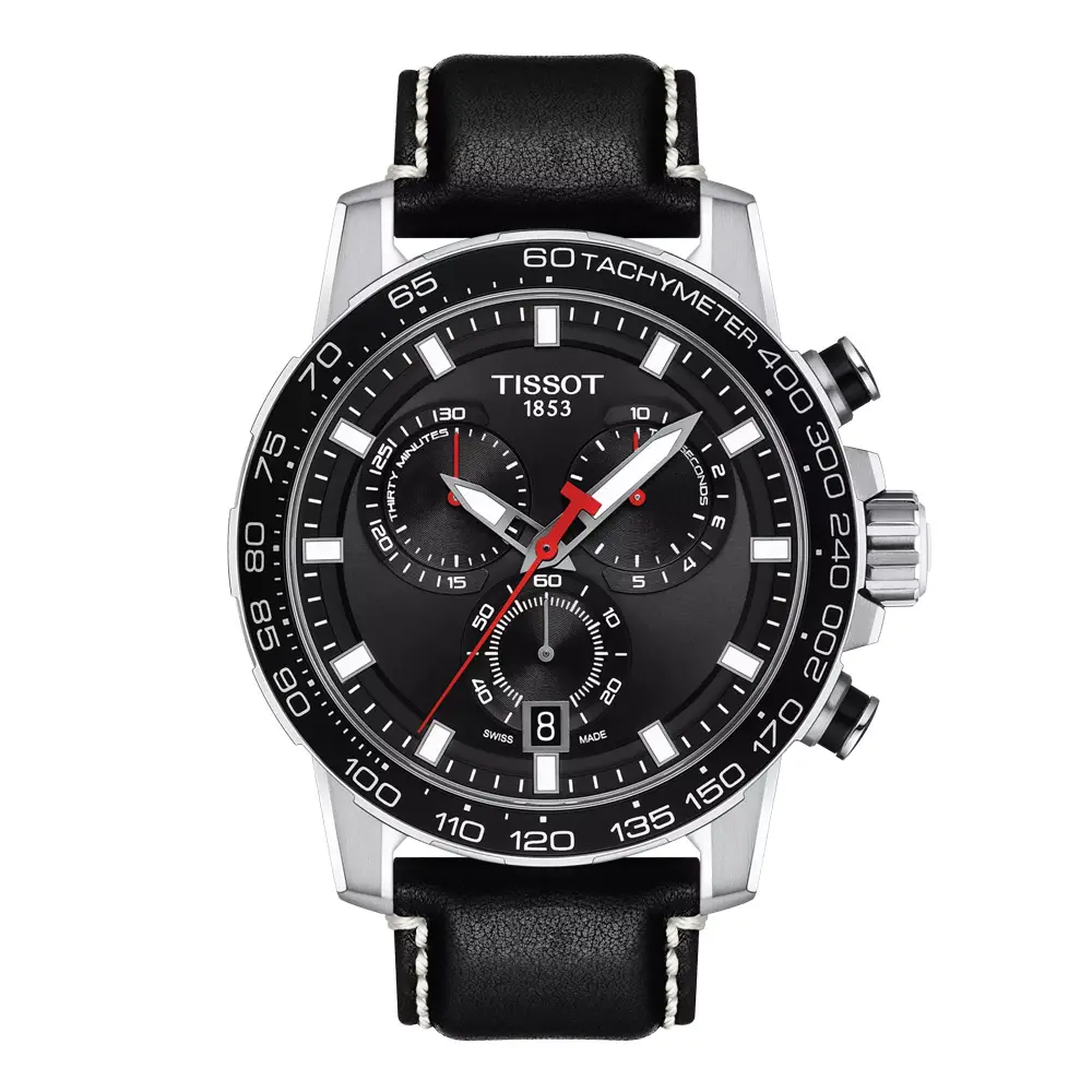Tissot Supersport Chronograph T125.617.16.051.00 kết hợp phong cách thể thao hiện đại, độ bền cao và độ chính xác Thụy Sĩ. Vỏ thép 316L 45,5 mm cùng mặt số đen mạnh mẽ mang đến vẻ ngoài năng động và đậm chất kỹ thuật. Dây da đen đem lại sự thoải mái và hoàn thiện phong cách thể thao-thanh lịch.