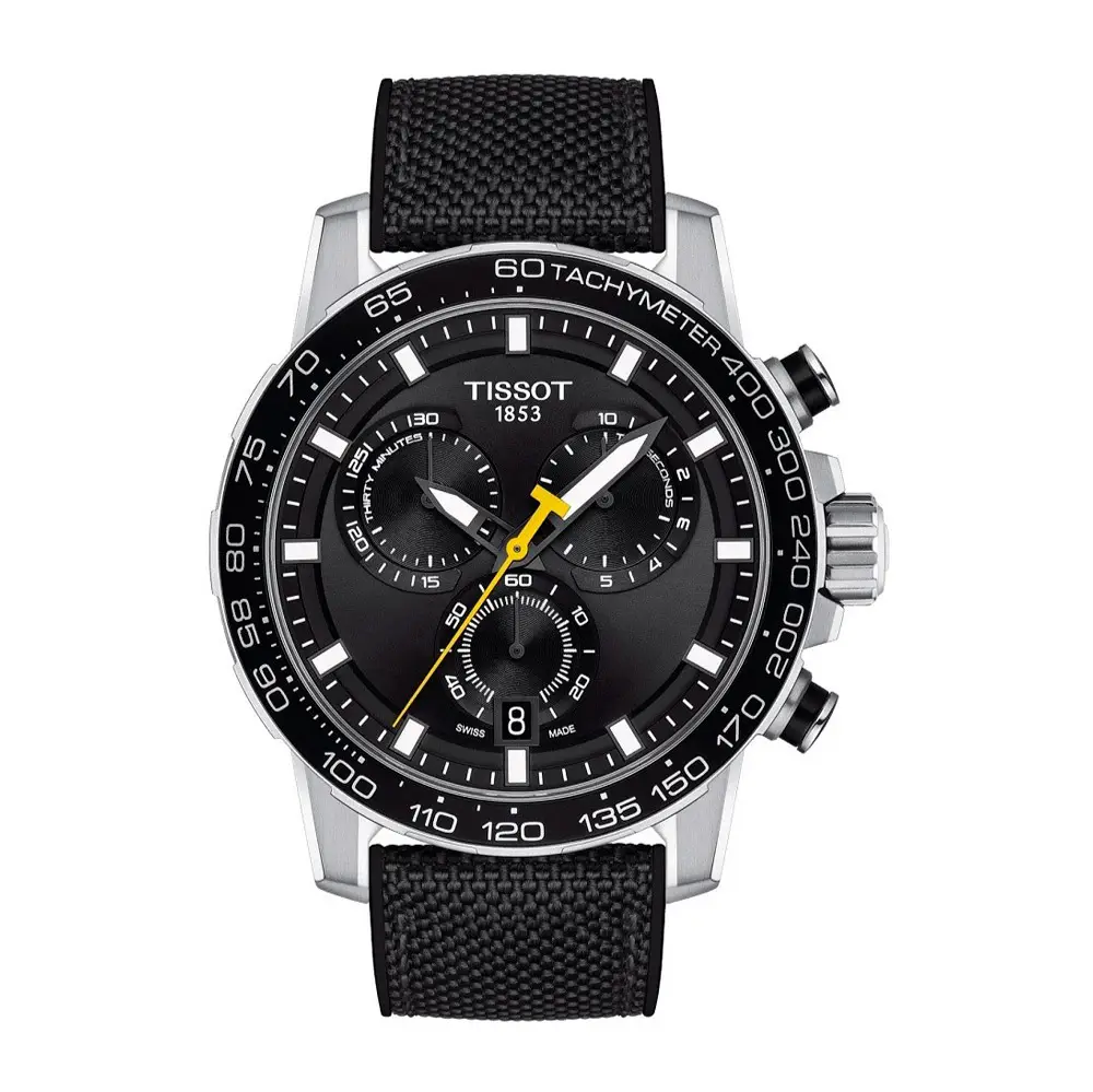 Dây đeo cao su pha vải màu đen mang lại sự thoải mái và bền bỉ. Với thiết kế mạnh mẽ và thể thao, đây là phụ kiện lý tưởng cho lối sống năng động. Tissot Supersport Chrono là biểu tượng của sức mạnh, phong cách và chất lượng Thụy Sĩ.