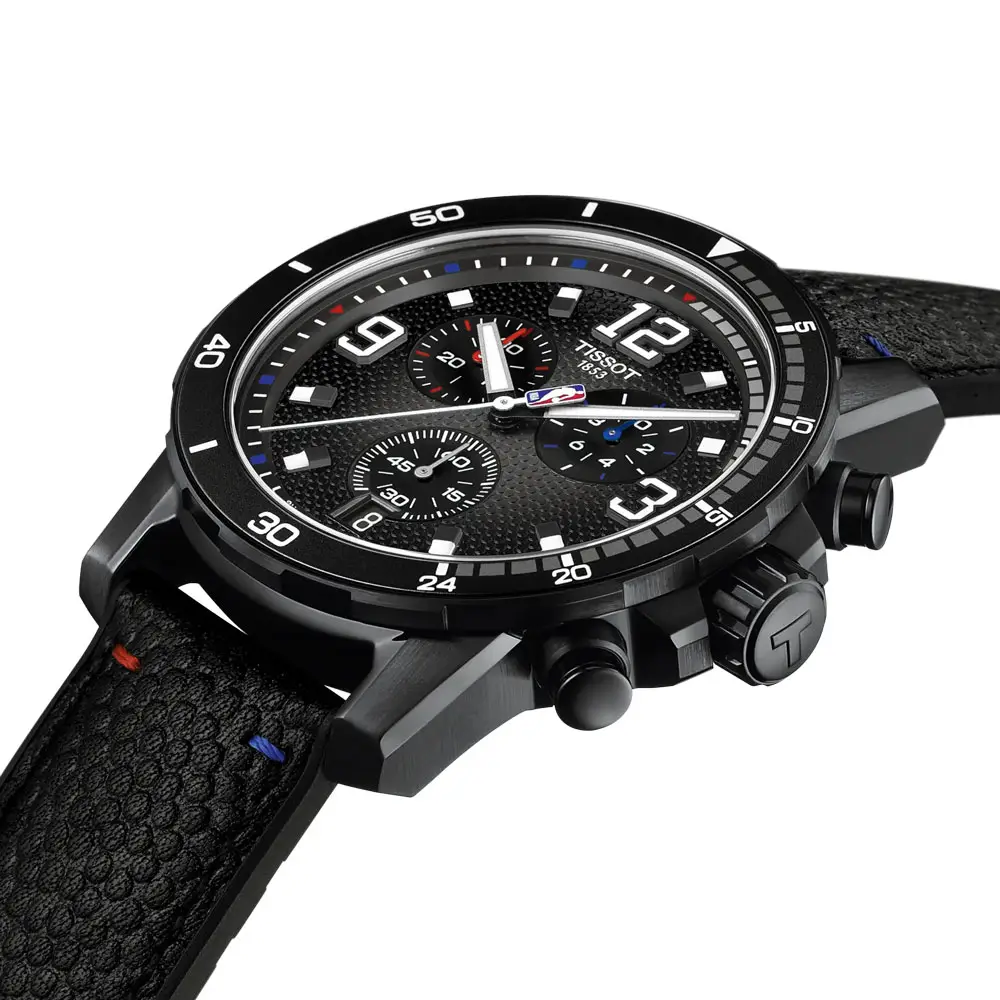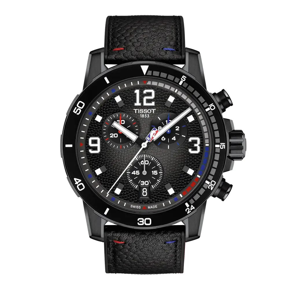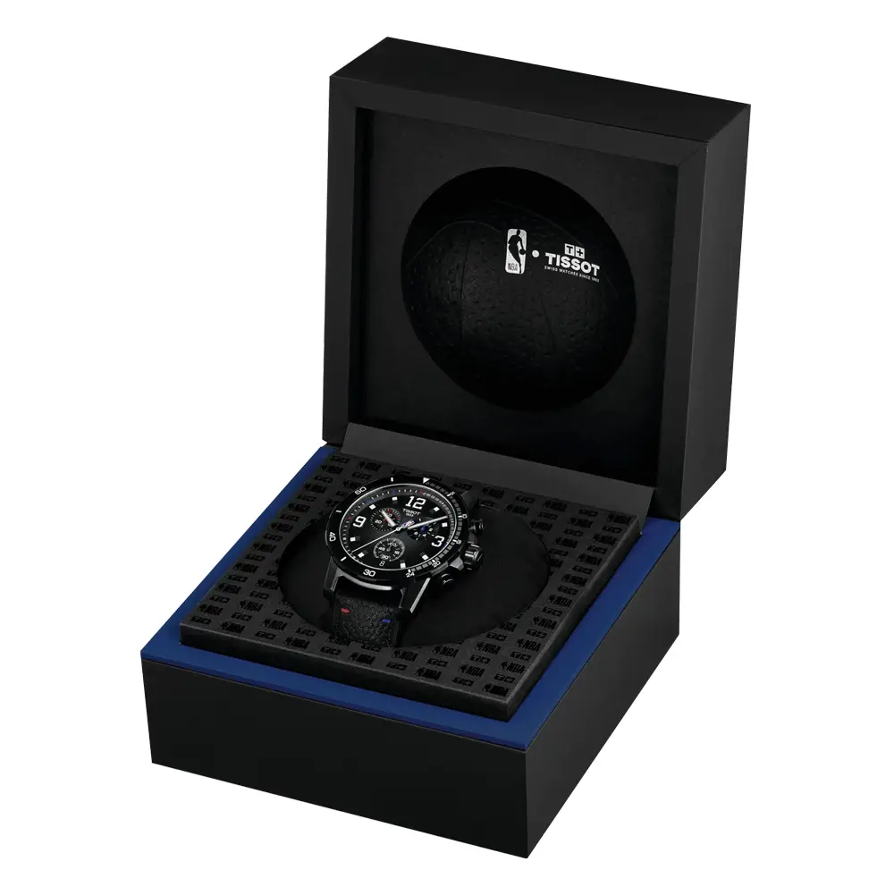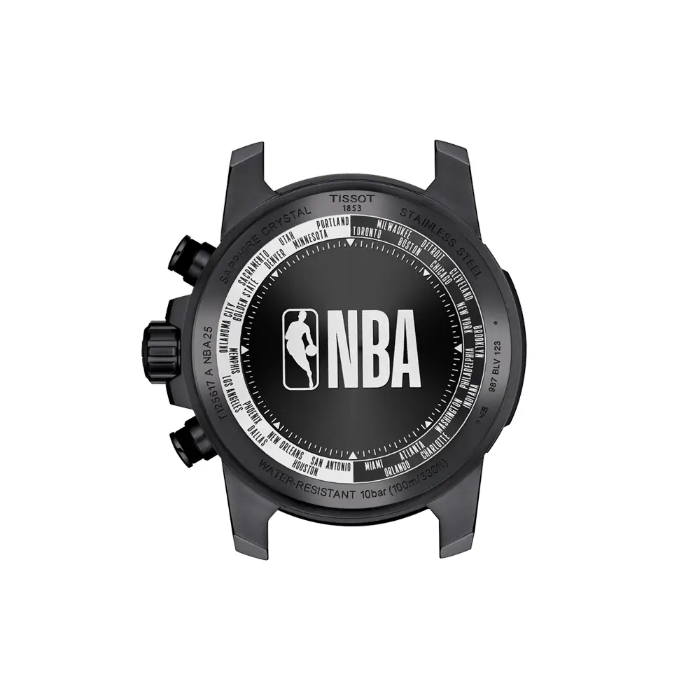 Tissot Supersport NBA Special Edition T125.617.37.067.00 là mẫu chronograph nam mạnh mẽ, kết hợp dynamism thể thao với kết cấu bền chắc. Vỏ thép không gỉ đường kính 45,5 mm với lớp phủ PVD đen, kính sapphire chống trầy và khả năng chống nước 100 m (10 bar) tạo nên vẻ ngoài đậm chất thể thao và nam tính, lấy cảm hứng từ bóng rổ chuyên nghiệp.