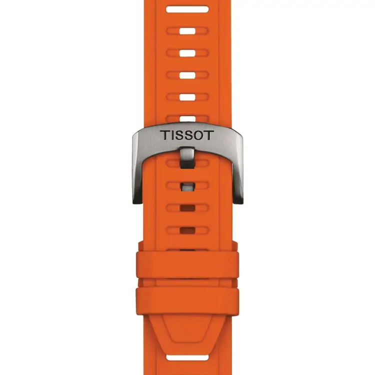 Dây đeo silicone màu cam với khóa gài tạo nên vẻ thể thao và thoải mái khi đeo. Với khả năng chống nước 5 ATM (50 m), đồng hồ phù hợp cho cả phong cách sống năng động lẫn sử dụng hàng ngày.