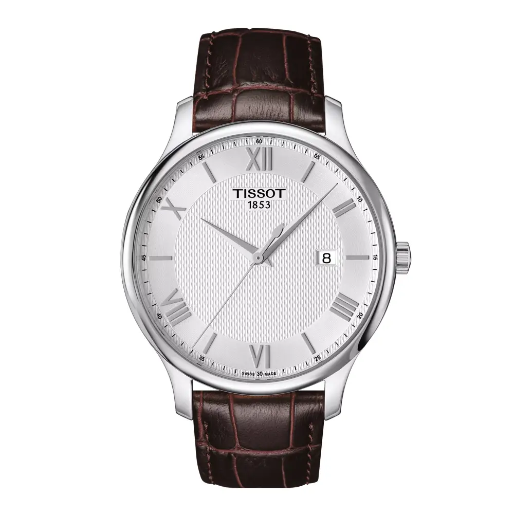 Tissot Tradition T063.610.16.038.00 kết hợp phong cách cổ điển với nét thanh lịch hiện đại và độ chính xác của Thụy Sĩ. Vỏ thép không gỉ 316L cùng kích thước 42 mm mang lại vẻ ngoài mạnh mẽ nhưng cân đối. Mặt số bạc với chữ số La Mã và các vạch chỉ tinh tế tạo nên vẻ đẹp sang trọng và vượt thời gian, được hoàn thiện bằng dây da nâu thoải mái.