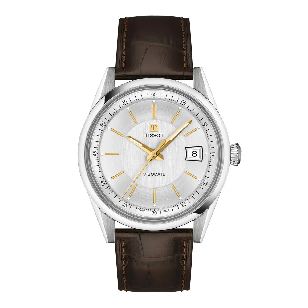 Tissot Visodate Powermatic 80 (ref. T157.407.16.031.00) là phiên bản hiện đại của mẫu đồng hồ biểu tượng từ thập niên 1950 với phong cách vintage thanh lịch. Vỏ 39 mm bằng thép không gỉ 316L mang lại kích thước cân đối cho cả trang phục hàng ngày và trang trọng. Trang bị kính sapphire cong chống phản xạ, tôn lên vẻ cổ điển. Khả năng chống nước 50 m (5 ATM).