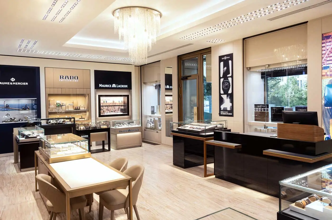 Cửa hàng không chỉ bán hàng mà còn cung cấp dịch vụ đặt hàng trước, nhận hàng trực tiếp tại cửa hàng hoặc tư vấn miễn phí. Trong khuôn khổ dịch vụ chuyên nghiệp, quý khách có thể sửa chữa đồng hồ hoặc làm sạch trang sức. Nhân viên giàu kinh nghiệm của chúng tôi luôn sẵn lòng tư vấn chuyên nghiệp và tận tình giúp quý khách lựa chọn trang sức phù hợp, phụ kiện sang trọng, đầu tư vào vàng hoặc đá quý. Chúng tôi hân hạnh đón tiếp quý khách hàng mỗi ngày trong tuần, bao gồm cả thứ Bảy và Chủ Nhật.