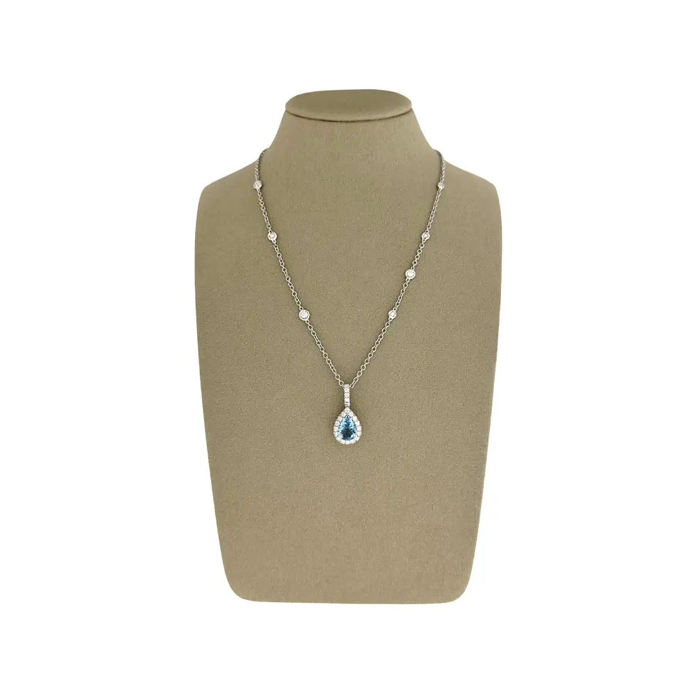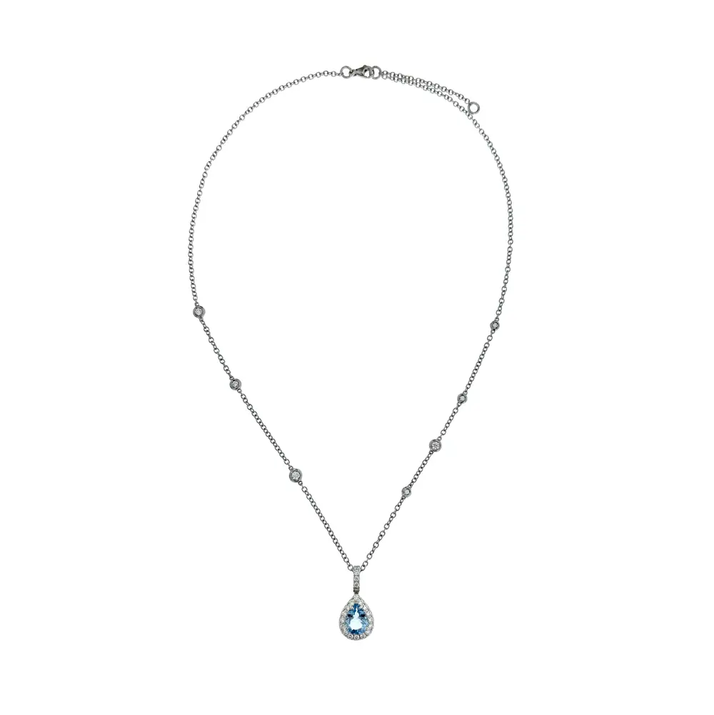 Vòng cổ cao cấp kết hợp ngọc aquamarine và kim cương