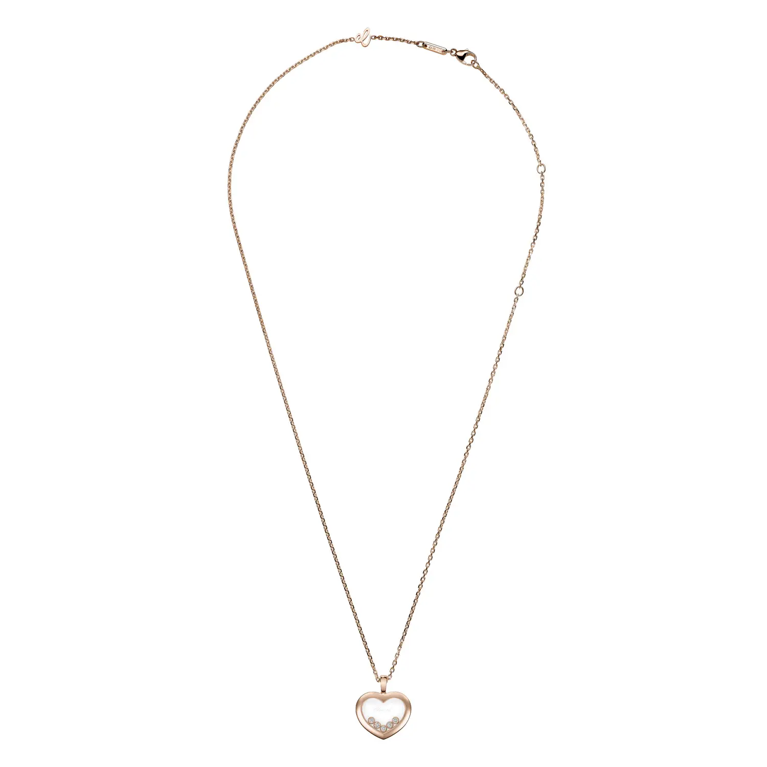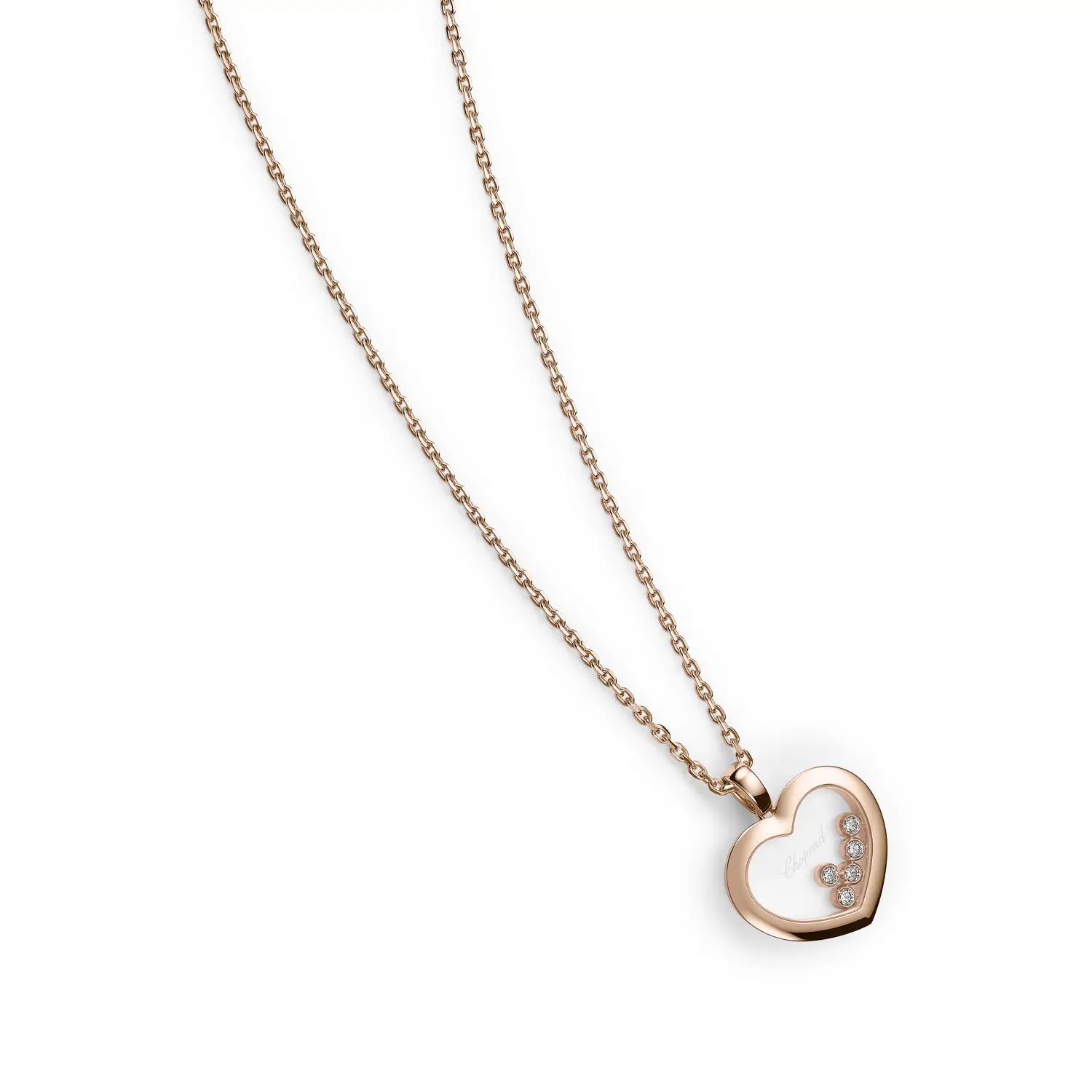 Dây chuyền Chopard Happy Diamonds 79A038-5001 tỏa sáng với sự thanh lịch, cảm xúc và thiết kế vượt thời gian. Được chế tác thủ công từ vàng hồng 18 karat (750/1000) với bề mặt đánh bóng tinh xảo, chiếc dây chuyền toát lên vẻ nữ tính tinh tế và sự sang trọng đầy mềm mại.
