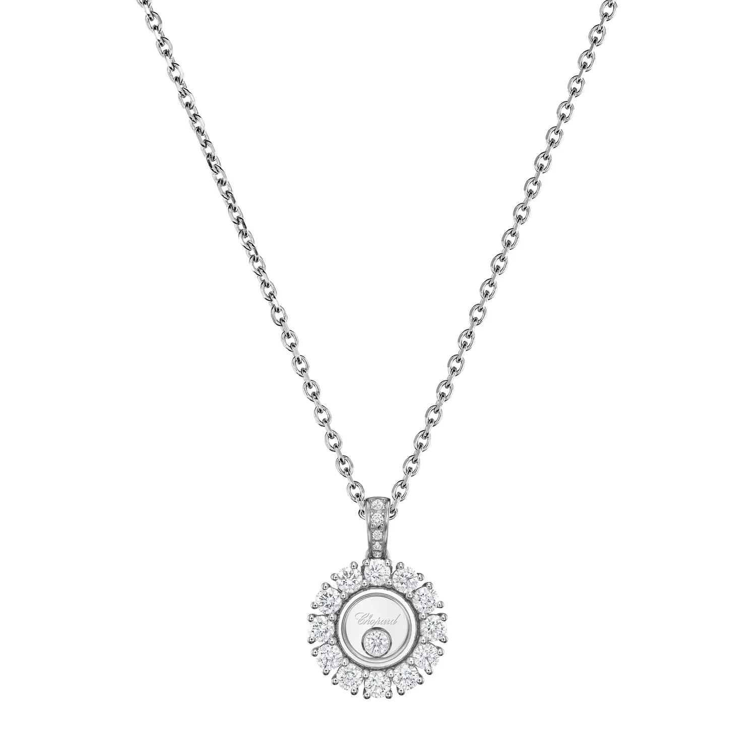 Dây chuyền Chopard Happy Diamonds 79A609-1001 là đỉnh cao của vẻ đẹp thanh lịch vượt thời gian và nghệ thuật chế tác trang sức. Được chế tác từ vàng trắng 18 karat (750/1000) với bề mặt đánh bóng hoàn hảo, nó mang lại vẻ ngoài tinh tế và sang trọng.