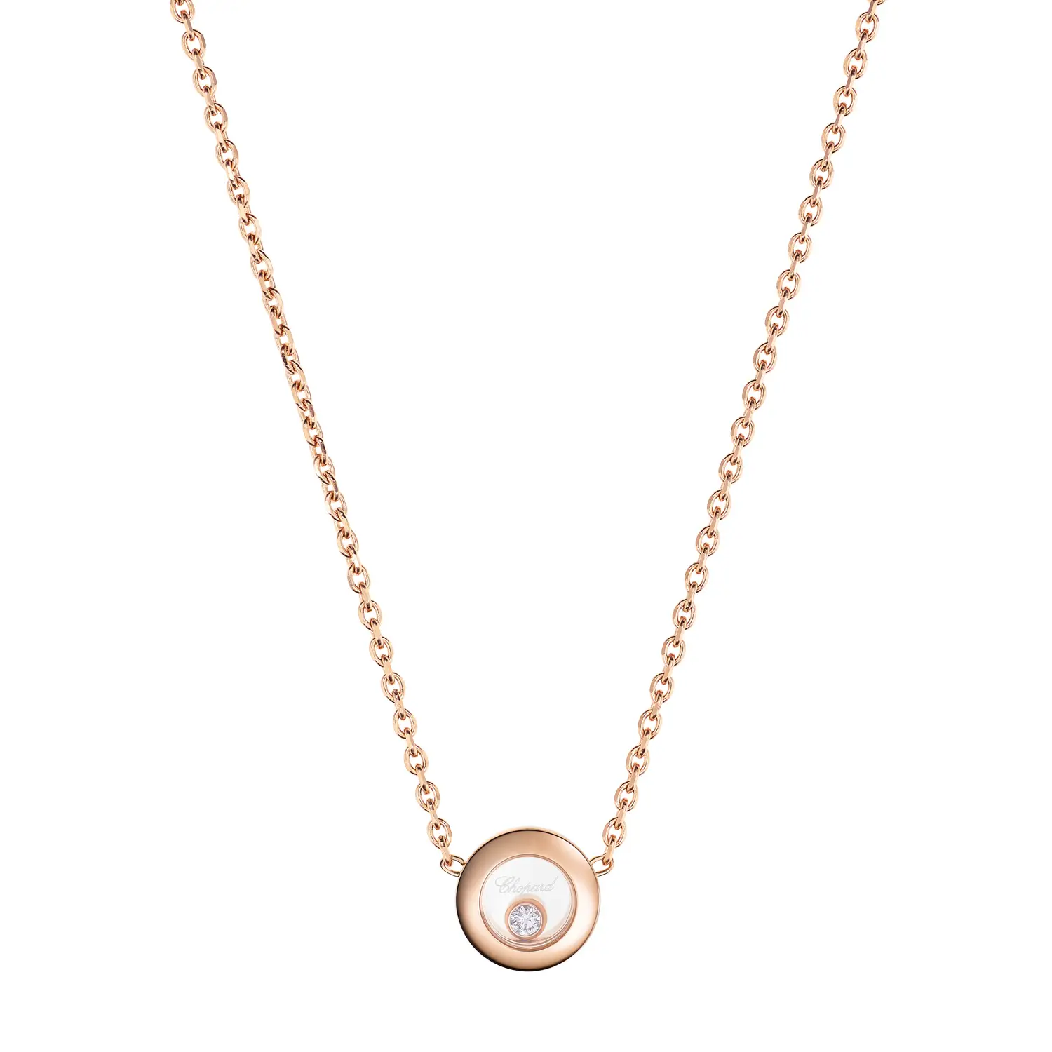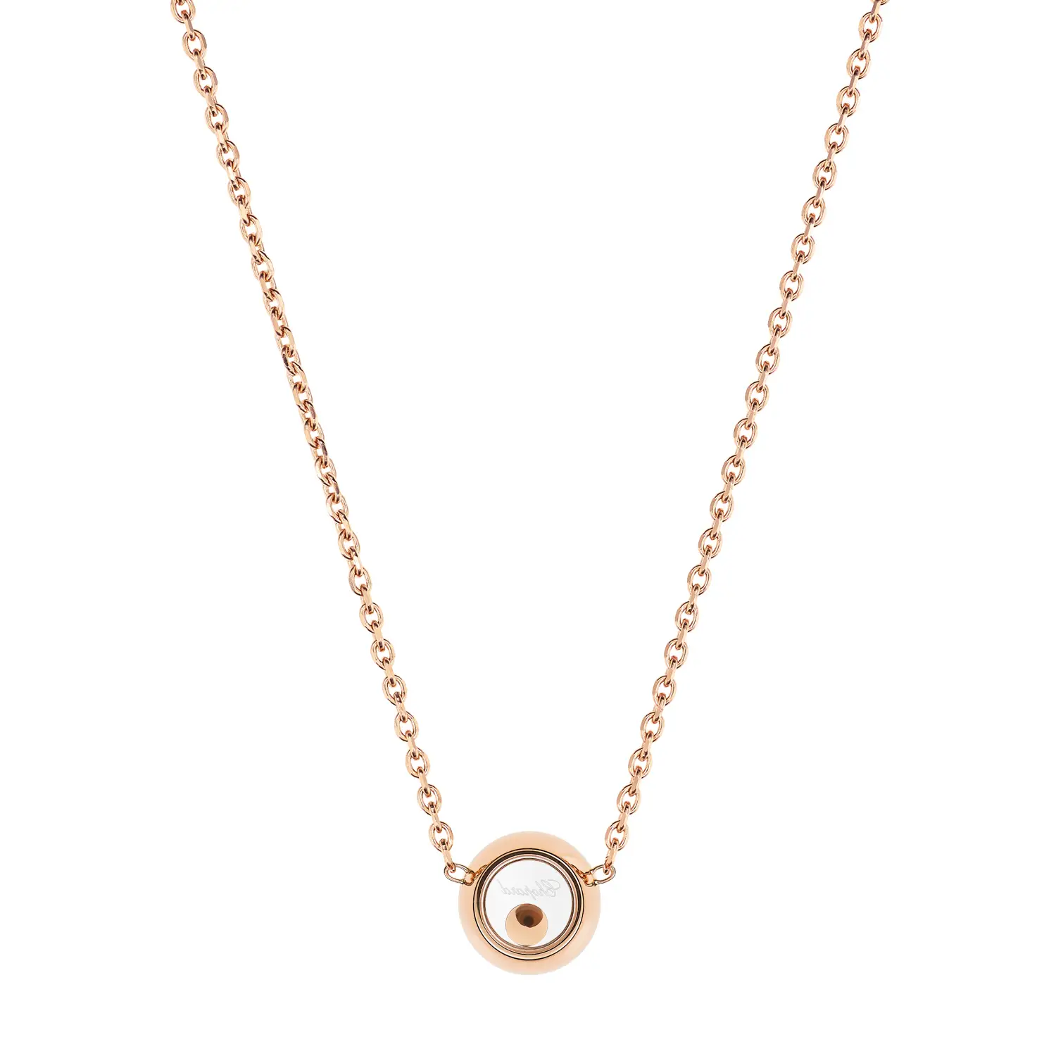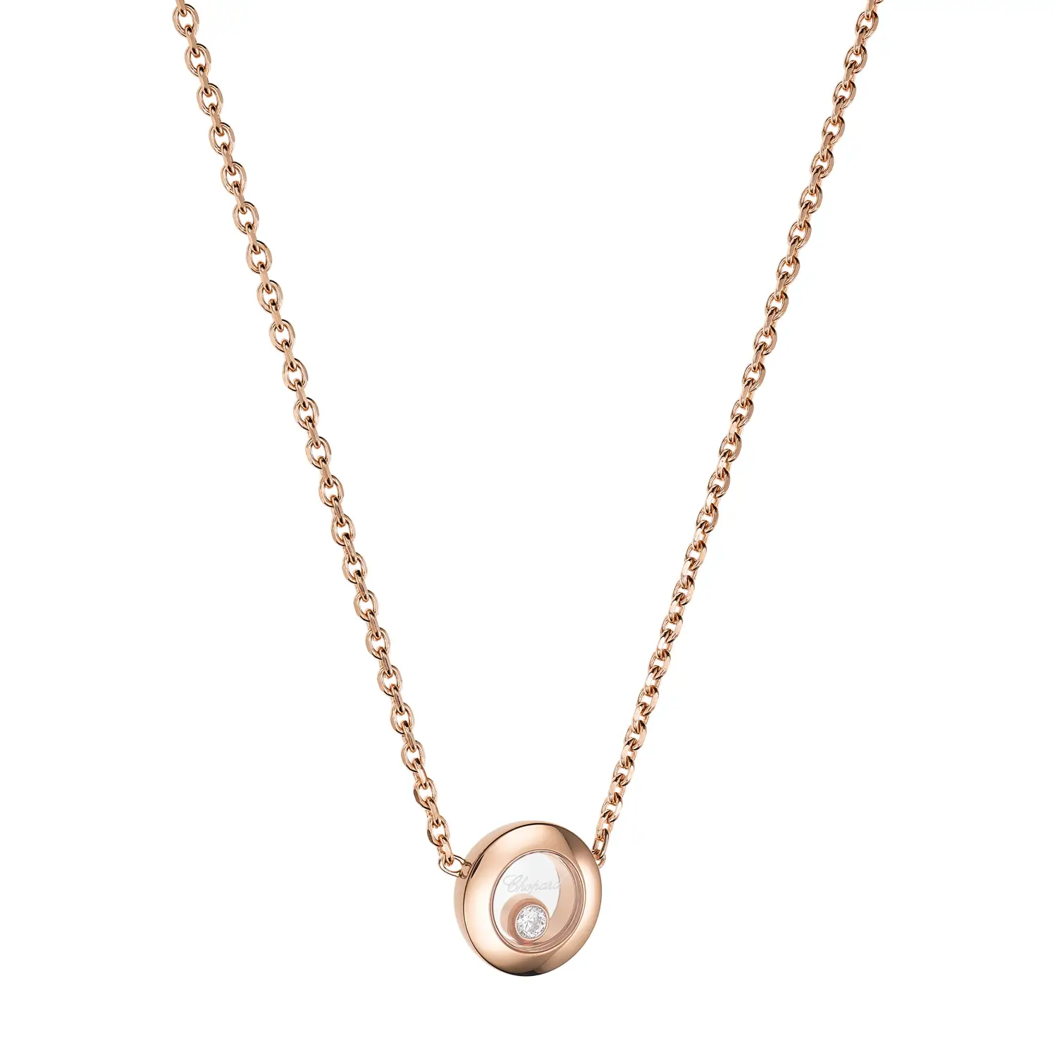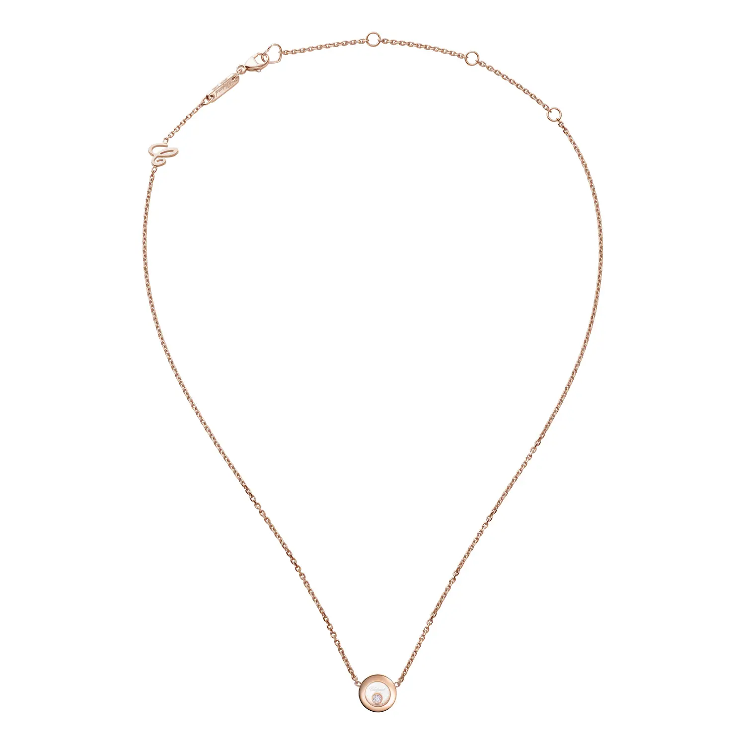 Chiếc dây chuyền thanh lịch này thuộc bộ sưu tập Happy Diamonds Icons, tôn vinh niềm vui, sự tự do và vẻ đẹp nữ tính vượt thời gian. Được chế tác từ vàng hồng 18 k và đính viên kim cương chuyển động tự do giữa hai lớp sapphire, món trang sức tỏa sáng với mỗi chuyển động, biểu trưng cho sự nhẹ nhàng và năng lượng tích cực.