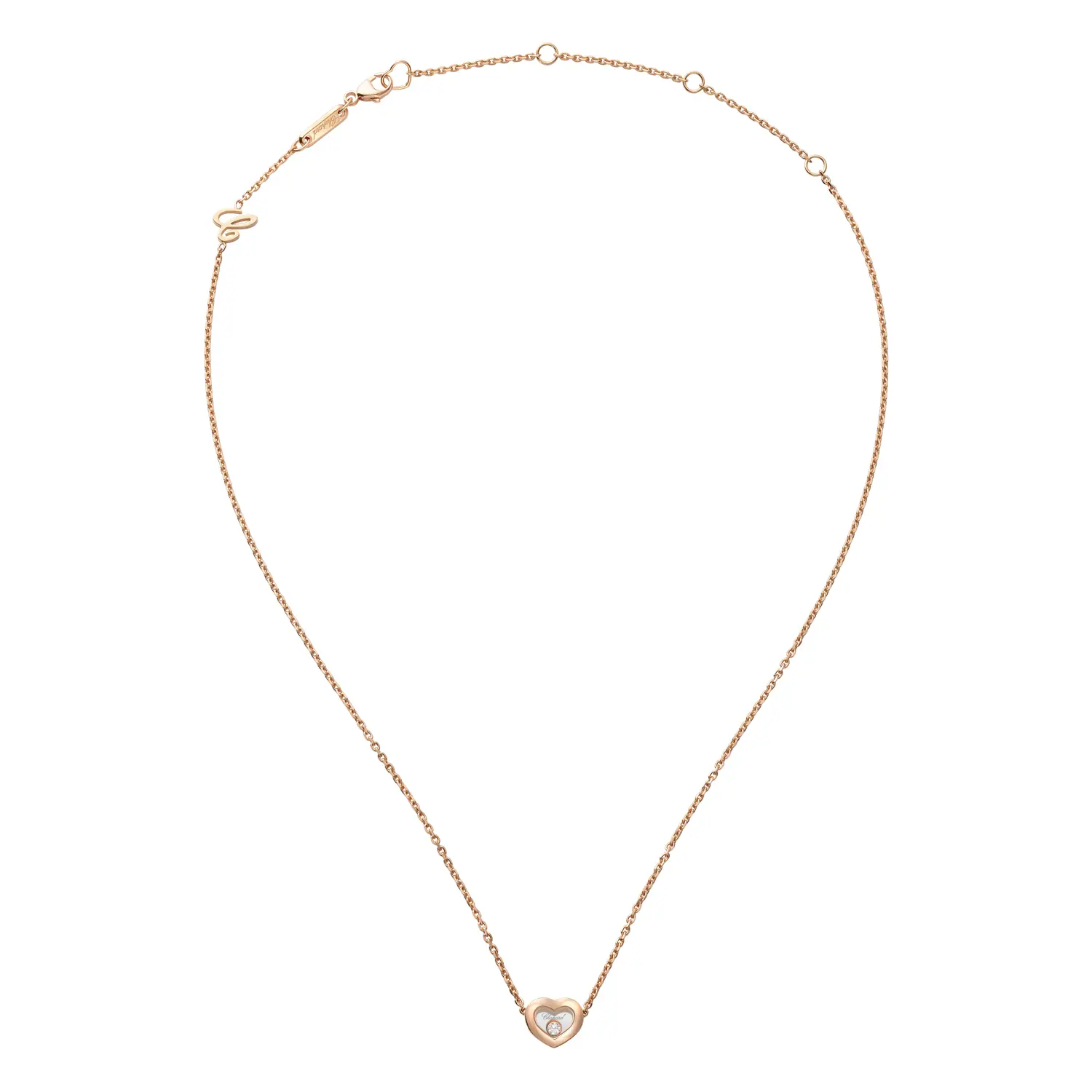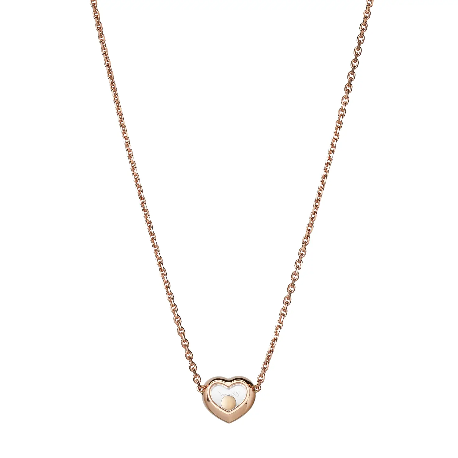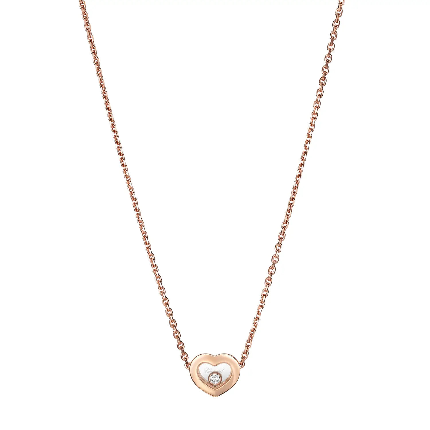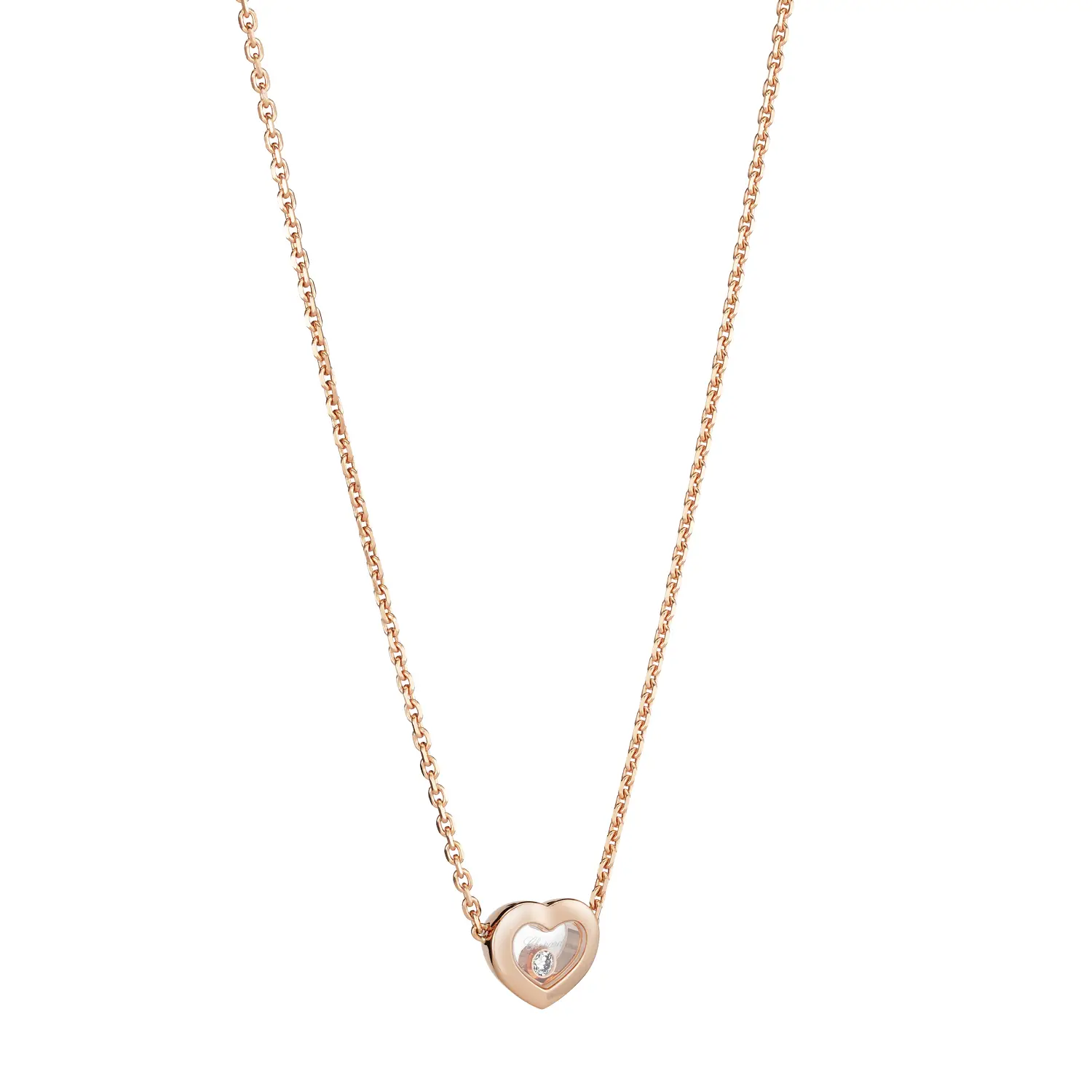 Dây chuyền Chopard Happy Diamonds Icons 81A054-5001 thể hiện sự nhẹ nhàng, tỏa sáng và chuyển động – tinh thần cốt lõi của bộ sưu tập Happy Diamonds. Được chế tác từ vàng hồng 18 cara có nguồn gốc đạo đức, dây chuyền được đính viên kim cương 0,05 ct chuyển động tự do giữa hai lớp kính sapphire, lấp lánh theo từng cử động.