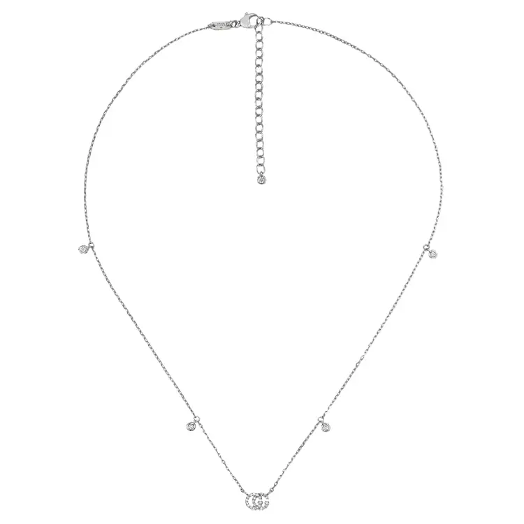 Gucci GG Running YBB47923100100U là dây chuyền thanh mảnh kết hợp vẻ thanh lịch tối giản với logo biểu tượng của hãng. Chế tác từ vàng trắng 18kt (750/1000), hoàn thiện đánh bóng, cùng dáng dây xích mảnh. Đeo thoải mái nhờ chiều dài điều chỉnh 37–42 cm và bề rộng 1,00 mm; kết cấu dây mềm ôm theo đường cổ. Chi tiết “GG” (5,15 × 8,00 mm) tinh tế, dễ phối tầng với các món khác.