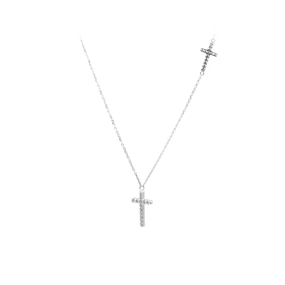 Vòng cổ hình thánh giá với đá zircon trắng vàng