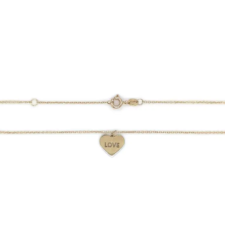 Vòng cổ hình trái tim vàng với dòng chữ "Yêu thương"