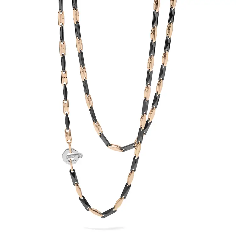 Triết lý của Barakà là nơi thiết kế và công nghệ hòa quyện. Mỗi món trang sức không chỉ là yếu tố thẩm mỹ mà còn là một tác phẩm kỹ thuật – thường lấy cảm hứng từ kiến trúc, cơ khí hoặc thế giới vật liệu công nghệ cao. Thương hiệu mạnh dạn kết hợp vàng với carbon, gốm hoặc thép, tạo nên sự tương phản bất ngờ và vẻ đẹp vượt thời gian.