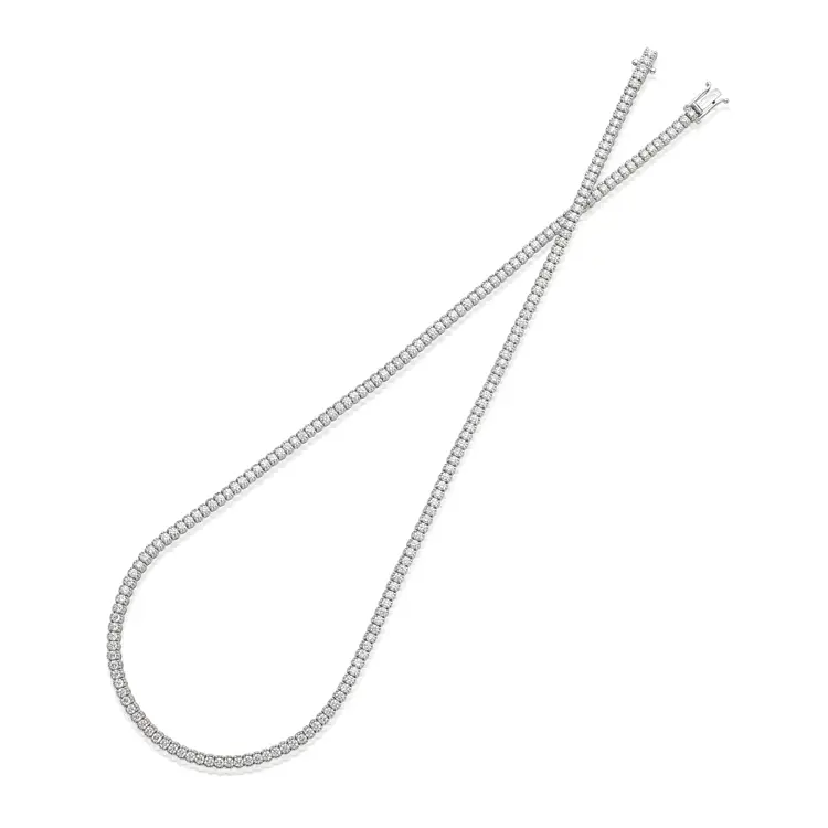Vòng cổ đính kim cương trắng tự nhiên cắt tròn (Round) viên tổng trọng lượng 6,00 carat, màu G–H, độ tinh khiết VS. Mỗi viên kim cương được gắn tỉ mỉ, tạo nên chuỗi ánh sáng liên tục bao quanh cổ – biểu tượng của phong cách và giá trị vĩnh hằng.