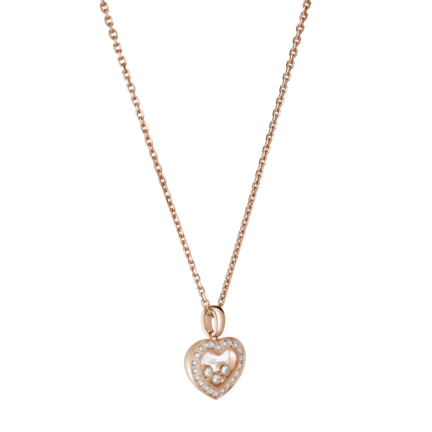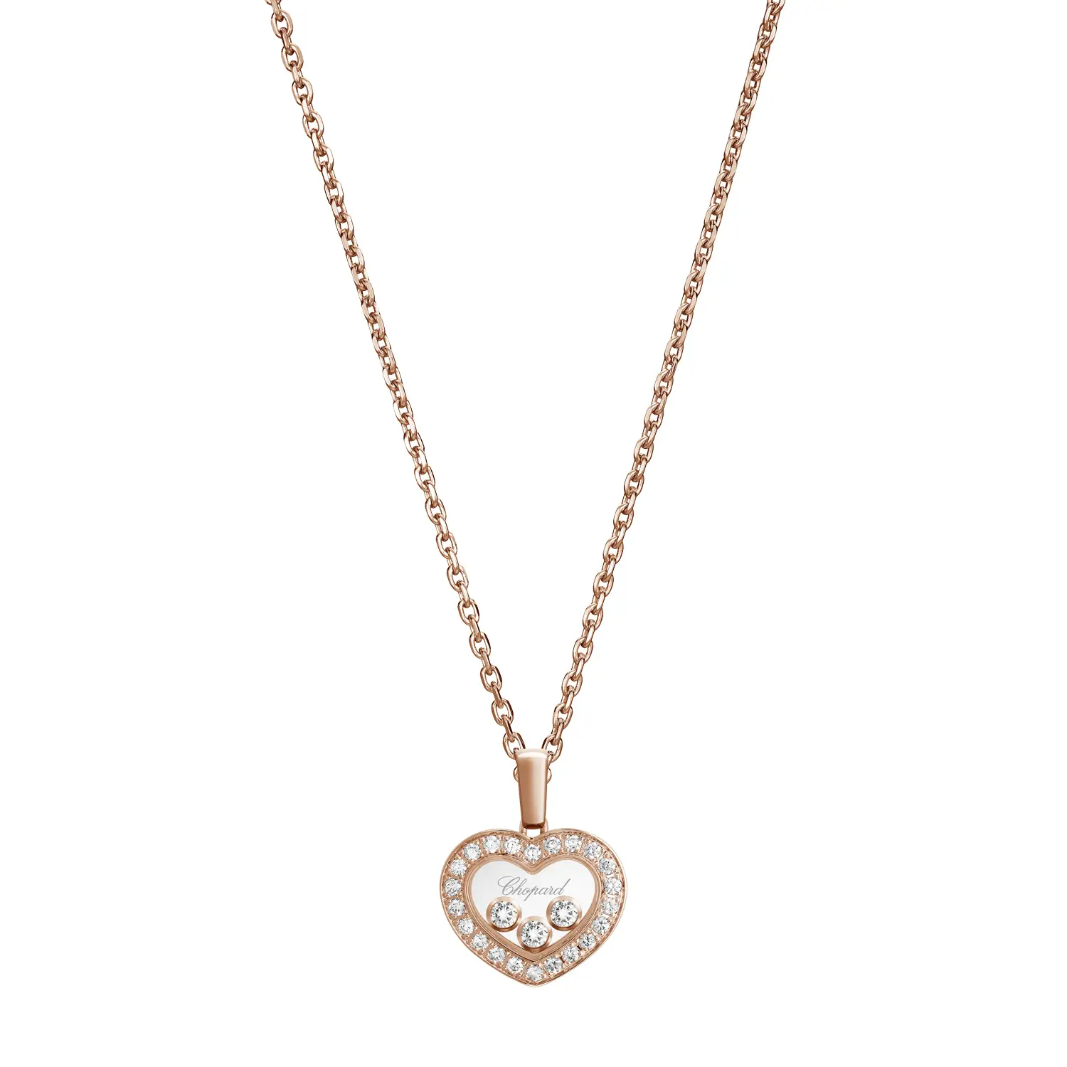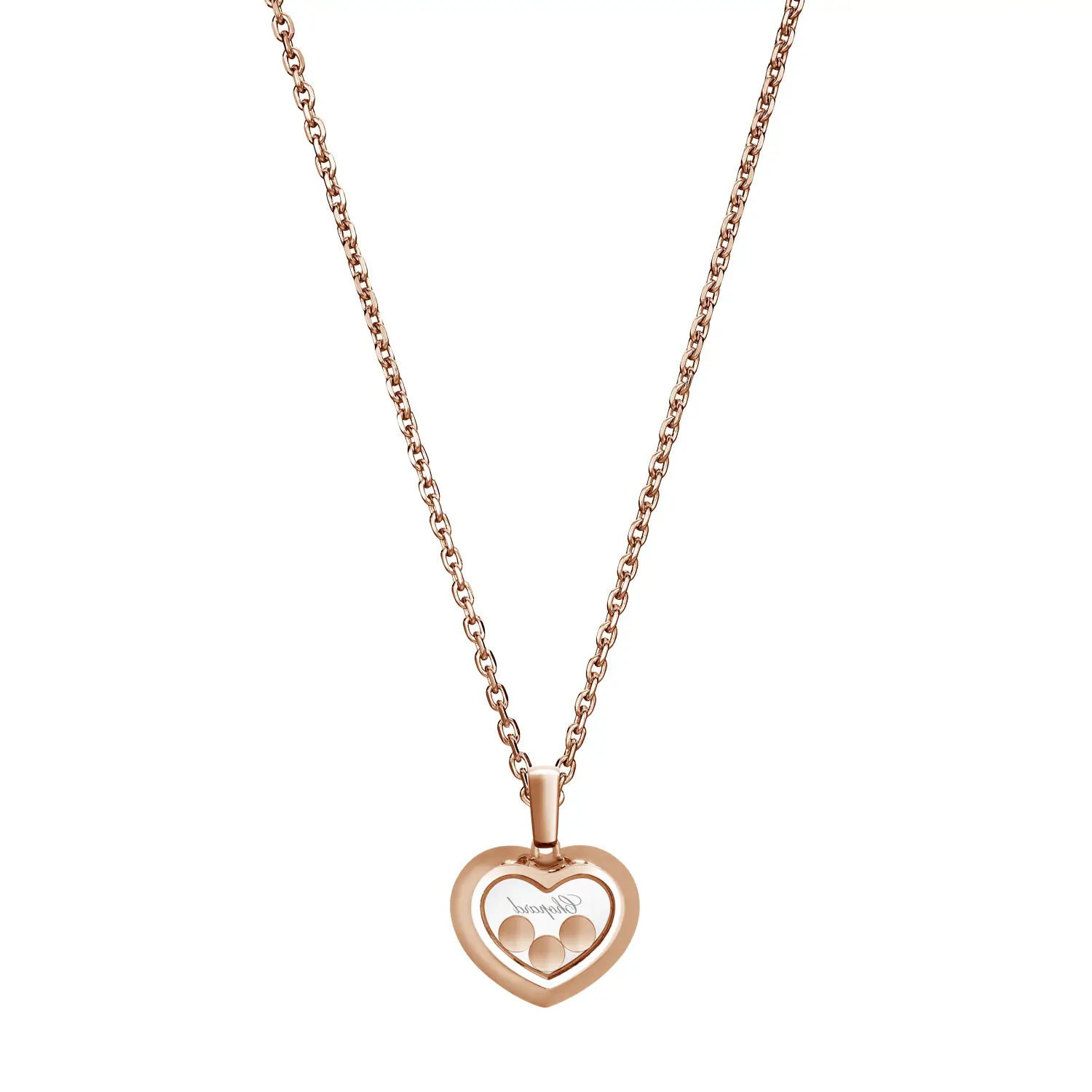 Mặt dây chuyền Chopard Happy Diamonds Icons 79A611-5201 thể hiện sự sang trọng và tinh tế mang nét vui tươi đặc trưng của bộ sưu tập. Được chế tác từ vàng hồng 18 cara có nguồn gốc đạo đức, thiết kế hình tròn chứa ba viên kim cương tự do chuyển động với tổng trọng lượng 0,35 cara, lấp lánh giữa hai lớp kính sapphire – biểu tượng của tự do và niềm vui sống.