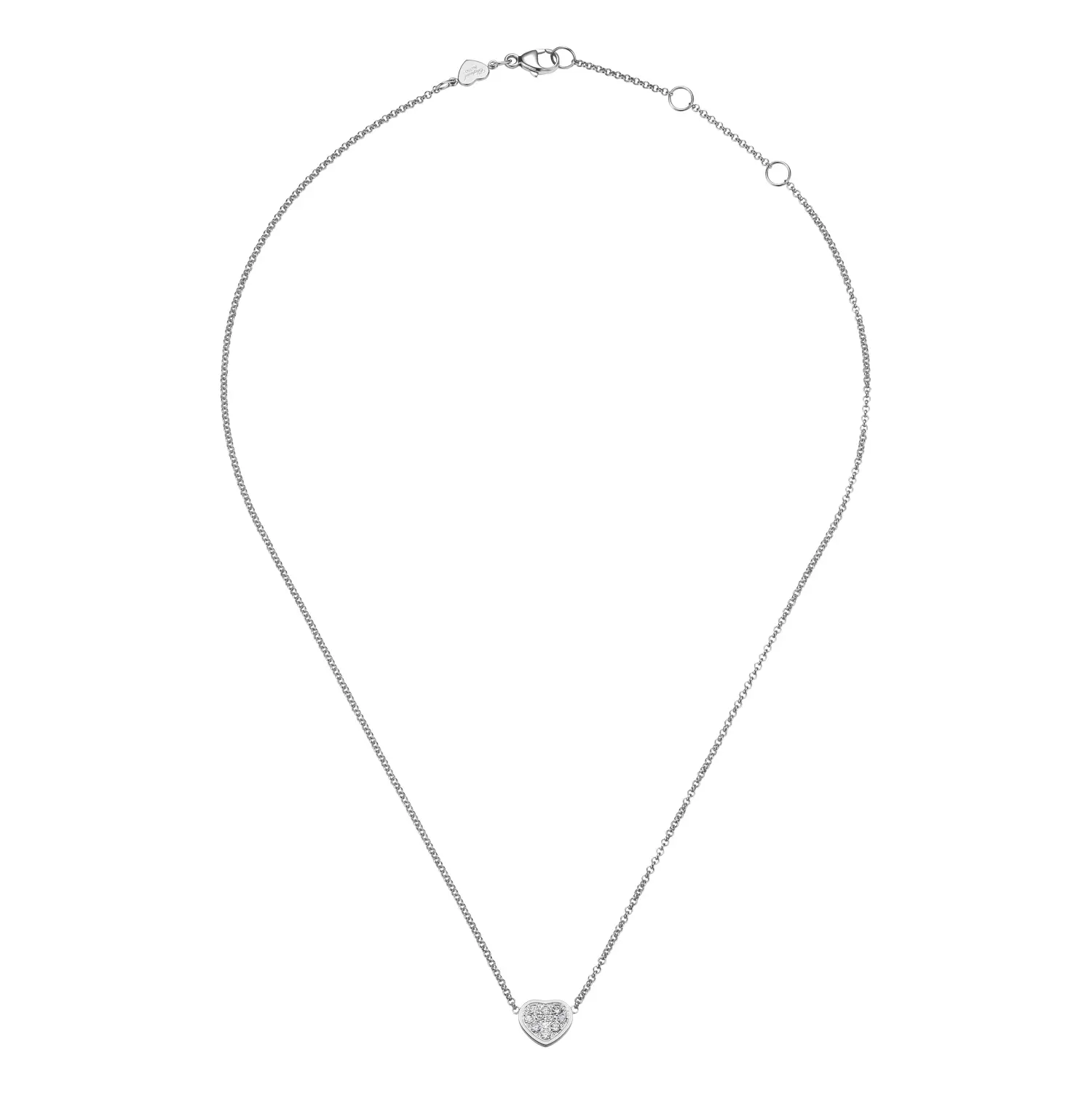 Dây chuyền Chopard My Happy Hearts 81A086-1901 thể hiện vẻ đẹp tinh tế, thanh lịch và vượt thời gian. Được chế tác từ vàng trắng 18 cara có nguồn gốc đạo đức, dây chuyền được trang trí bằng trái tim đính kim cương tổng cộng 0,12 ct, tỏa sáng lấp lánh theo từng chuyển động.