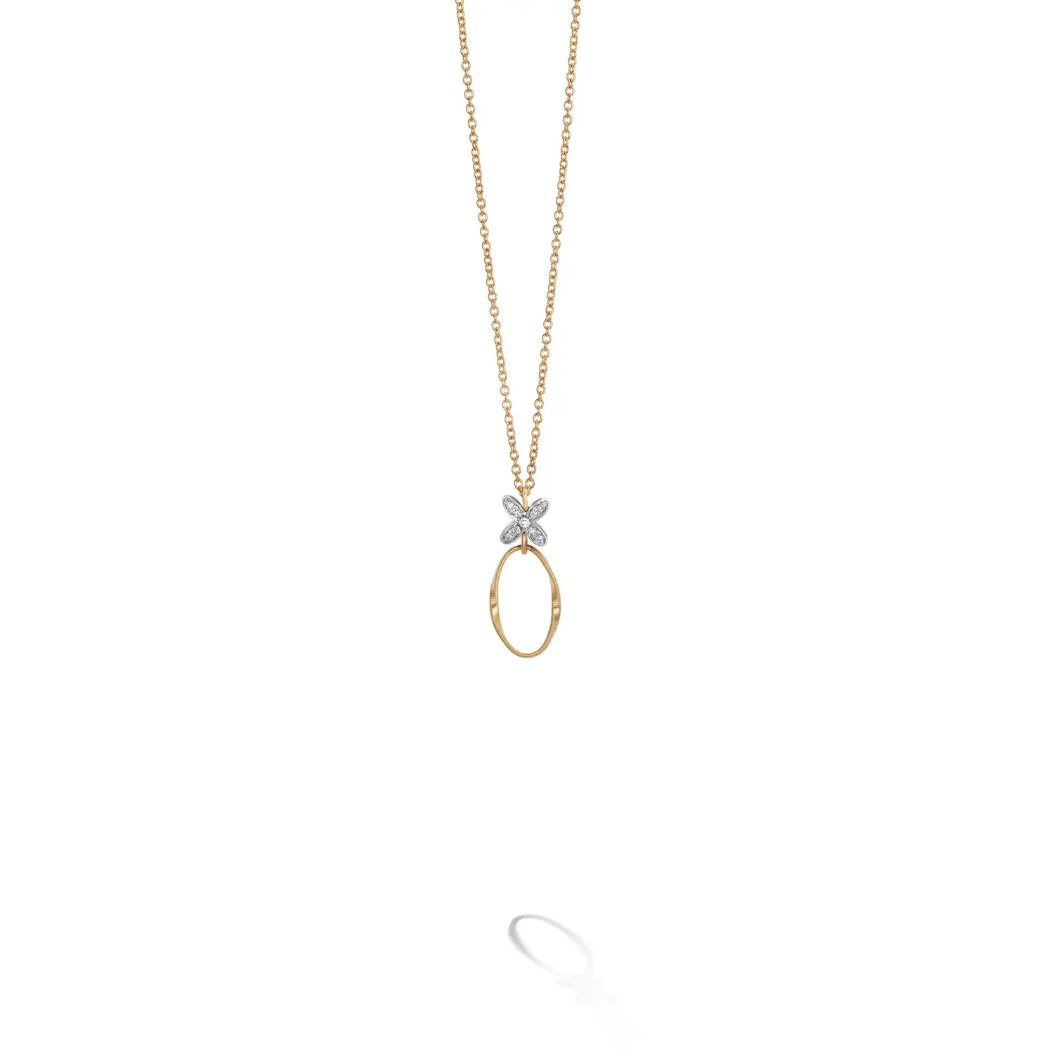 Mặt dây chuyền Marco Bicego Marrakech Onde CG830 B3 YW thể hiện tinh hoa chế tác Ý và phong cách hiện đại thanh lịch. Được làm từ vàng kết hợp 18k (750/1000) giữa vàng vàng và vàng trắng với lớp hoàn thiện mờ (matný), chiếc dây chuyền mang vẻ đẹp tự nhiên và sang trọng. Kích thước mặt dây 29 × 12 mm, chiều dài 42 cm, vừa vặn và cân đối.