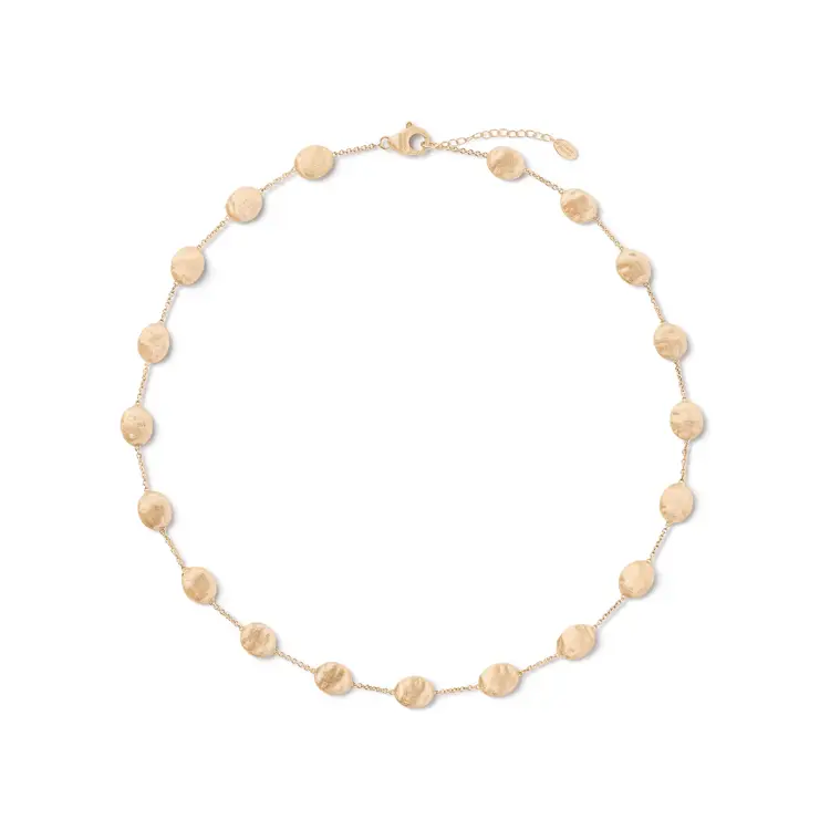 Dây chuyền Marco Bicego Siviglia CB538-E Y thể hiện sự kết hợp tinh tế giữa nghệ thuật thủ công Ý truyền thống và vẻ đẹp hiện đại. Được chế tác từ vàng vàng 18k (750/1000) với bề mặt bóng & mờ, chiếc vòng tỏa ra ánh sáng ấm áp và sang trọng. Chiều dài 42 cm giúp ôm nhẹ cổ một cách thanh thoát, phù hợp cho cả phong cách thường ngày lẫn trang trọng.
