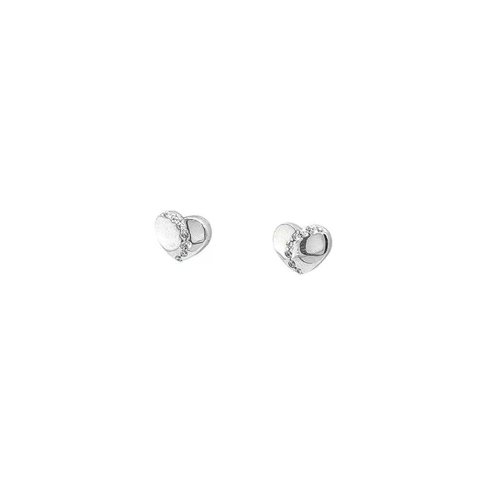 Vòng tai bằng vàng trắng hình trái tim, trang trí bằng đá zircon