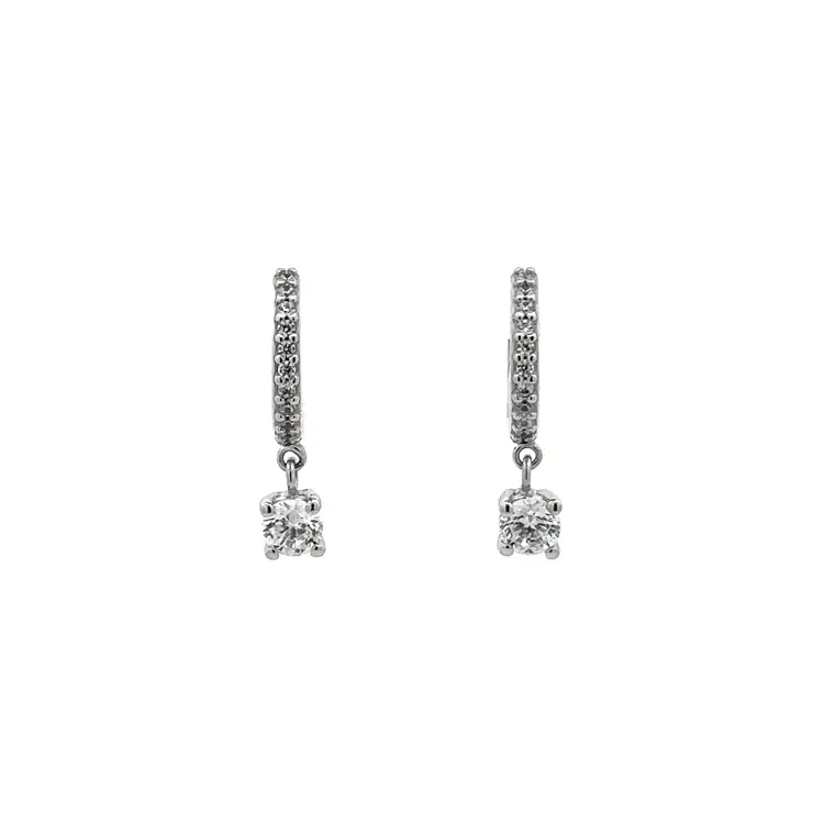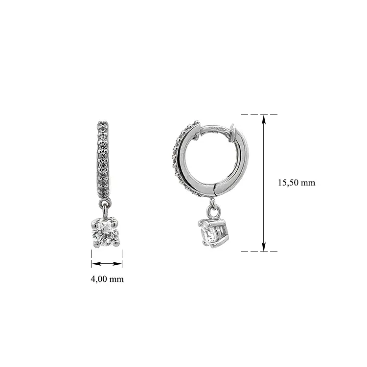 Vòng tai dạng chuỗi với đá zircon trắng và vàng trắng
