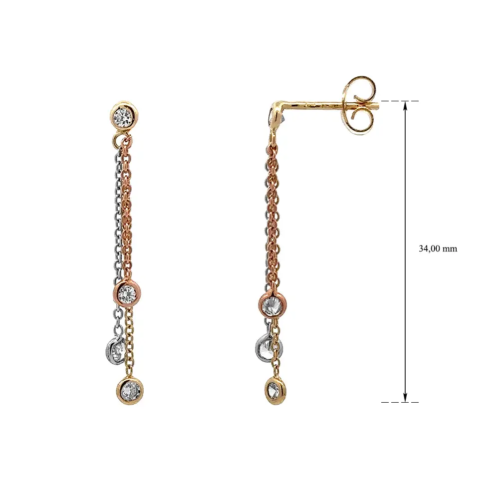 Vòng tai dạng chuỗi với đá zircon trong vàng