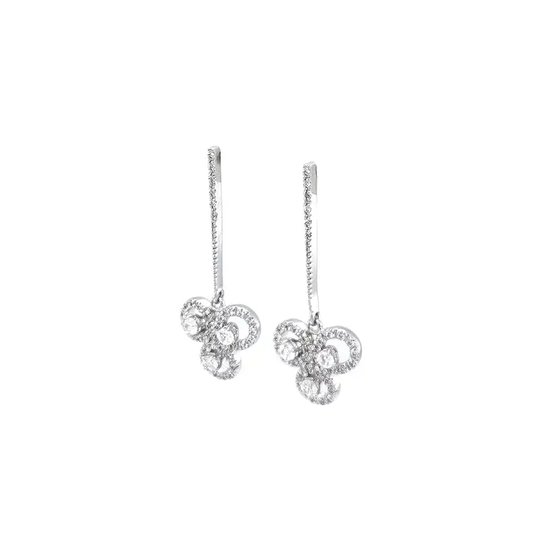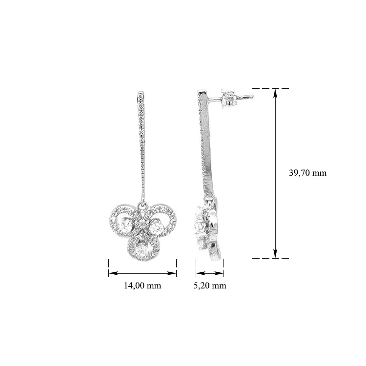 Vòng tai đeo dài bằng vàng trắng đính đá zircon