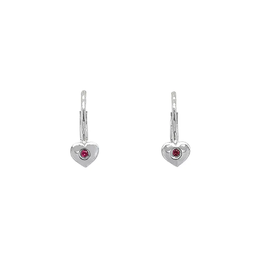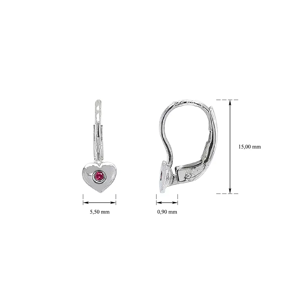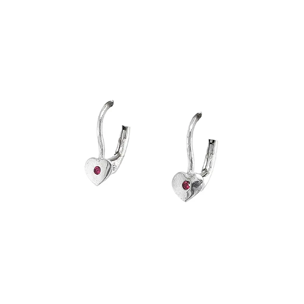 Vòng tai hình trái tim đính ruby trên vàng trắng