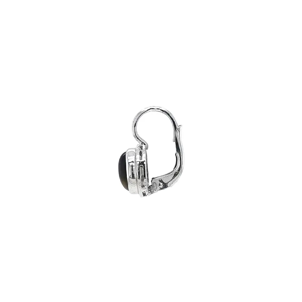 Vòng tai ngắn màu trắng vàng với đá mắt hổ