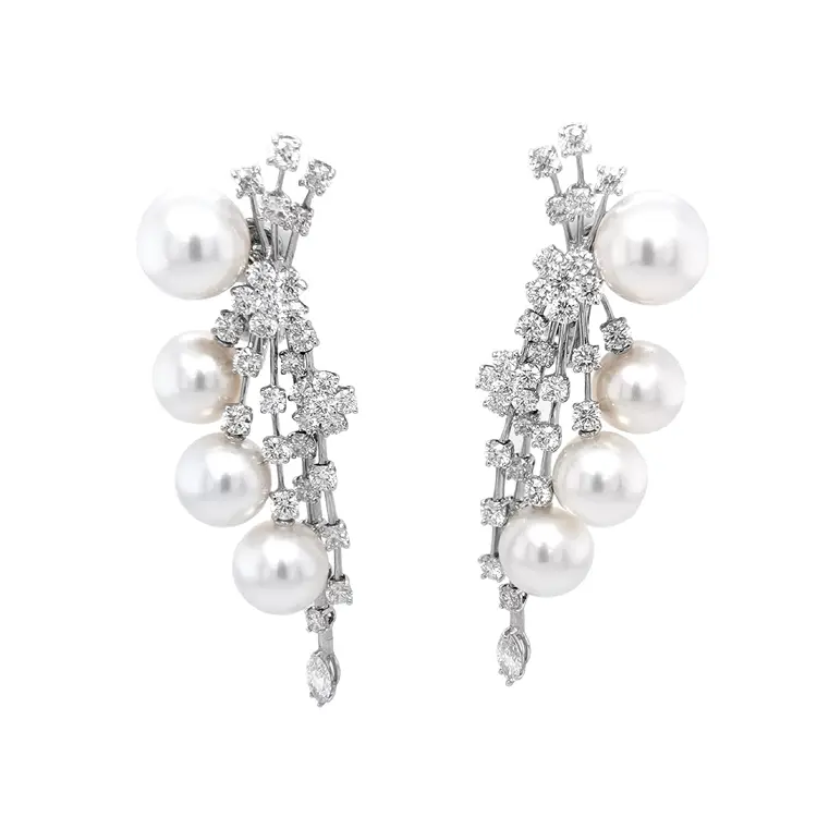 Vòng tai ngọc trai vàng đính kim cương SS AA