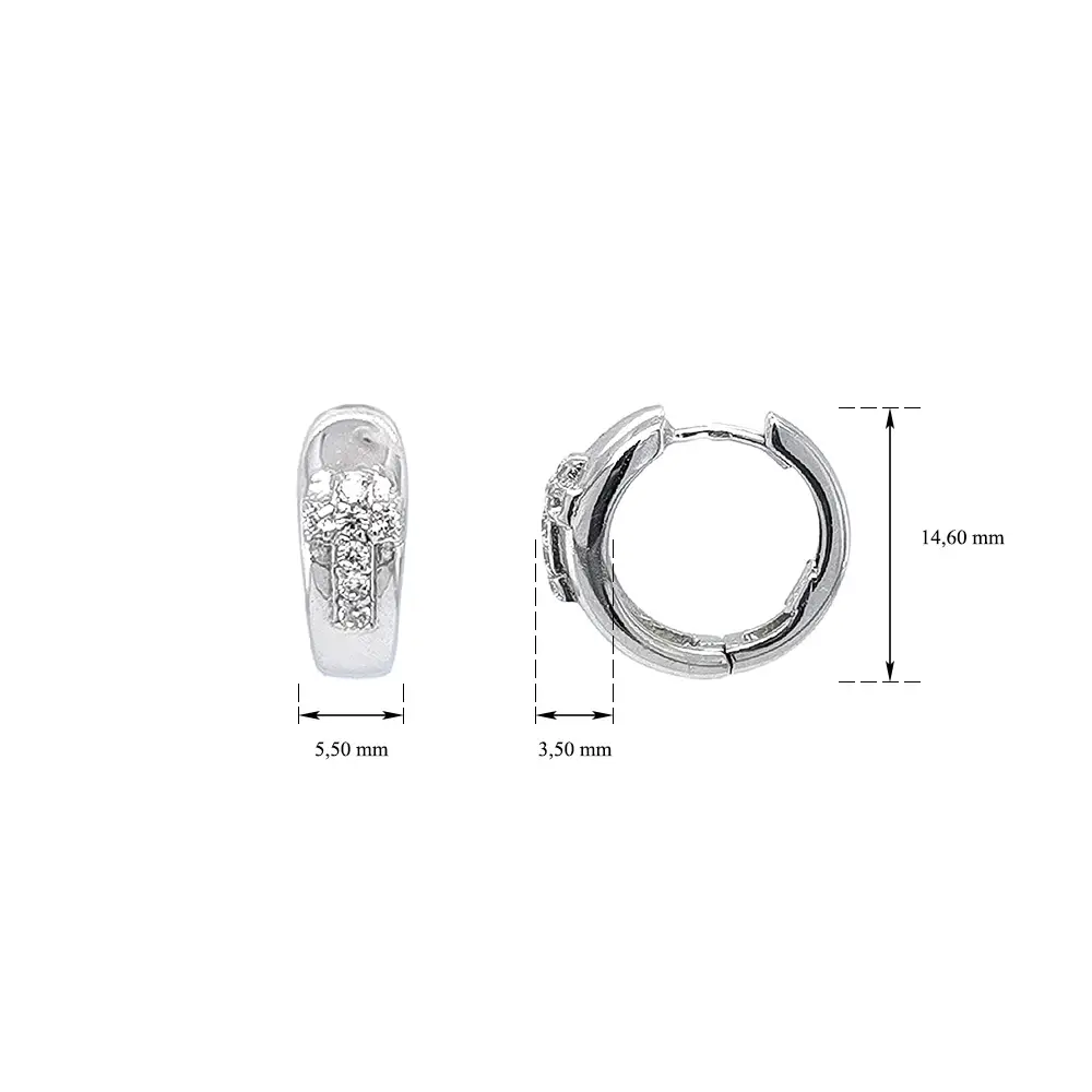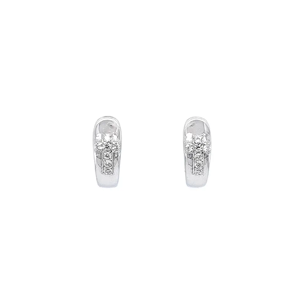 Vòng tai tròn hình thập tự với đá zircon trắng và vàng trắng