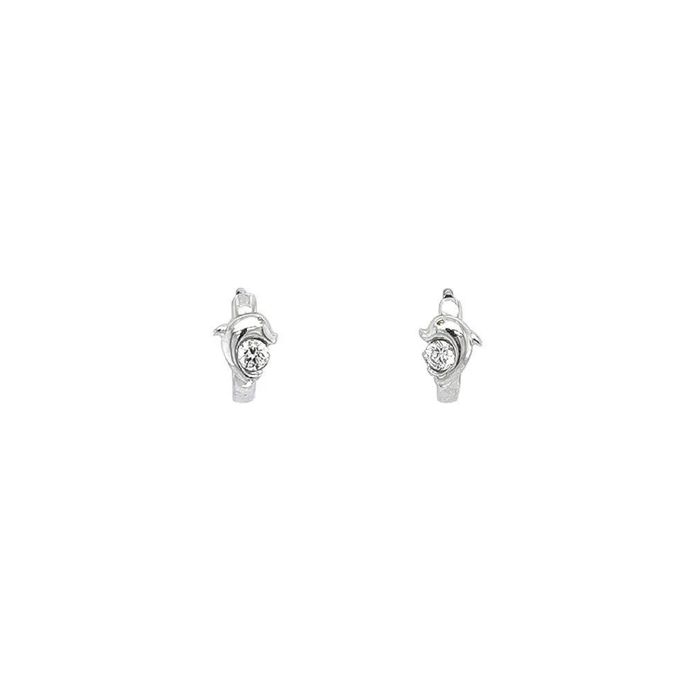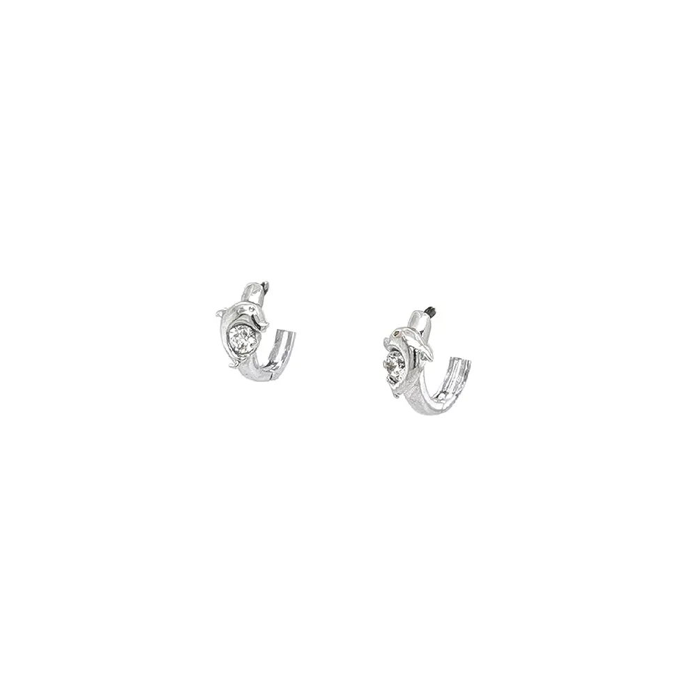 Vòng tai tròn với hình cá heo và đá zircon trắng vàng