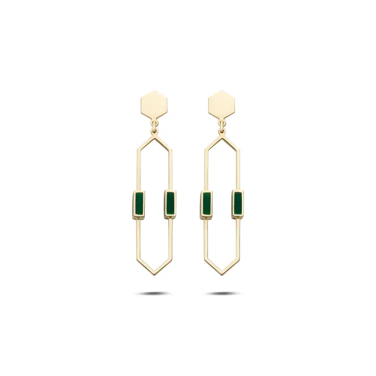 Vòng tai vàng cao cấp với họa tiết men sứ