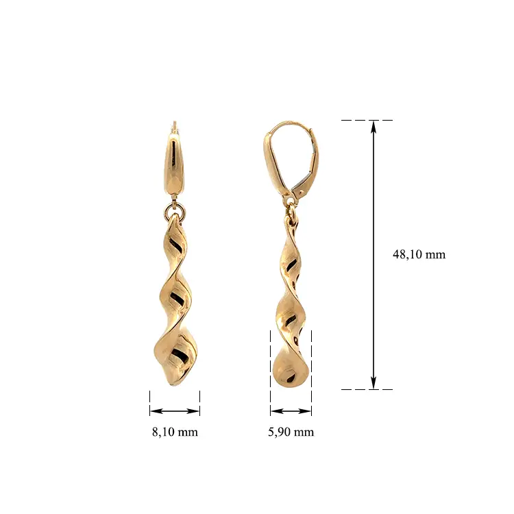 Vòng tai vàng cao cấp với thiết kế dáng dài và hiệu ứng xoắn độc đáo