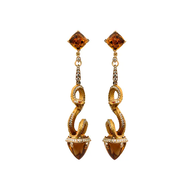 Những chiếc bông tai này là sự hòa quyện giữa biểu tượng rắn trong thần thoại, tương phản kim loại & đá quý, cùng kỹ nghệ chế tác tinh xảo — là món trang sức có câu chuyện, có cá tính và đầy ấn tượng.