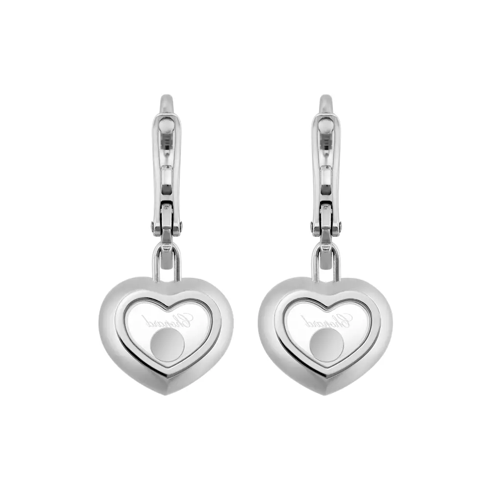 Chopard Happy Diamonds 83A054-1401 là đôi bông tai thả thanh lịch, dung hòa nét tinh nghịch của bộ sưu tập với vẻ quý phái vượt thời gian. Chế tác từ vàng trắng 18kt (750/1000) với hoàn thiện đánh bóng và họa tiết trái tim đặc trưng, mang cảm giác dịu dàng nhưng hiện đại. Khóa cài kiểu Pháp (lever-back) cho cảm giác đeo chắc chắn, thoải mái, tôn lên chất lượng hoàn thiện cao cấp và yên tâm dùng cả ngày.