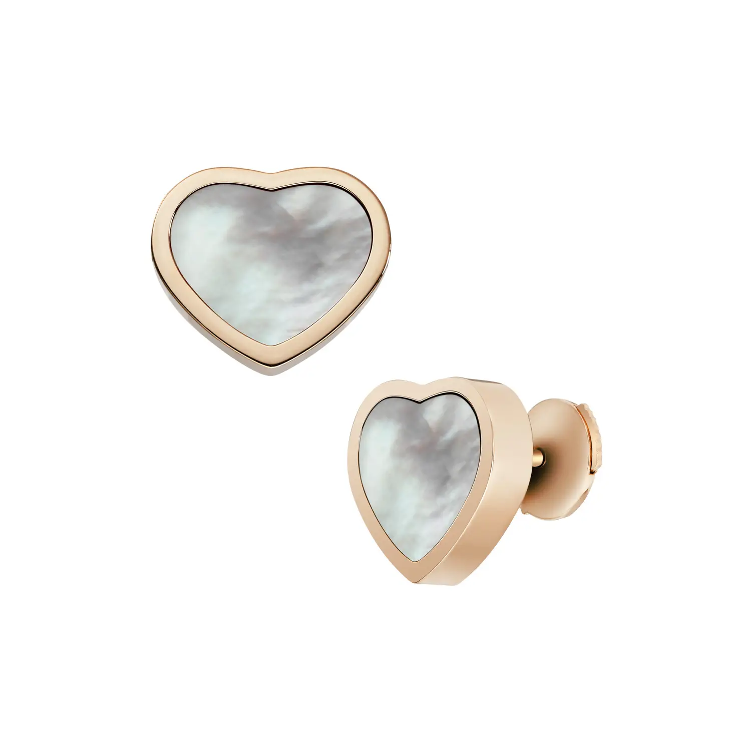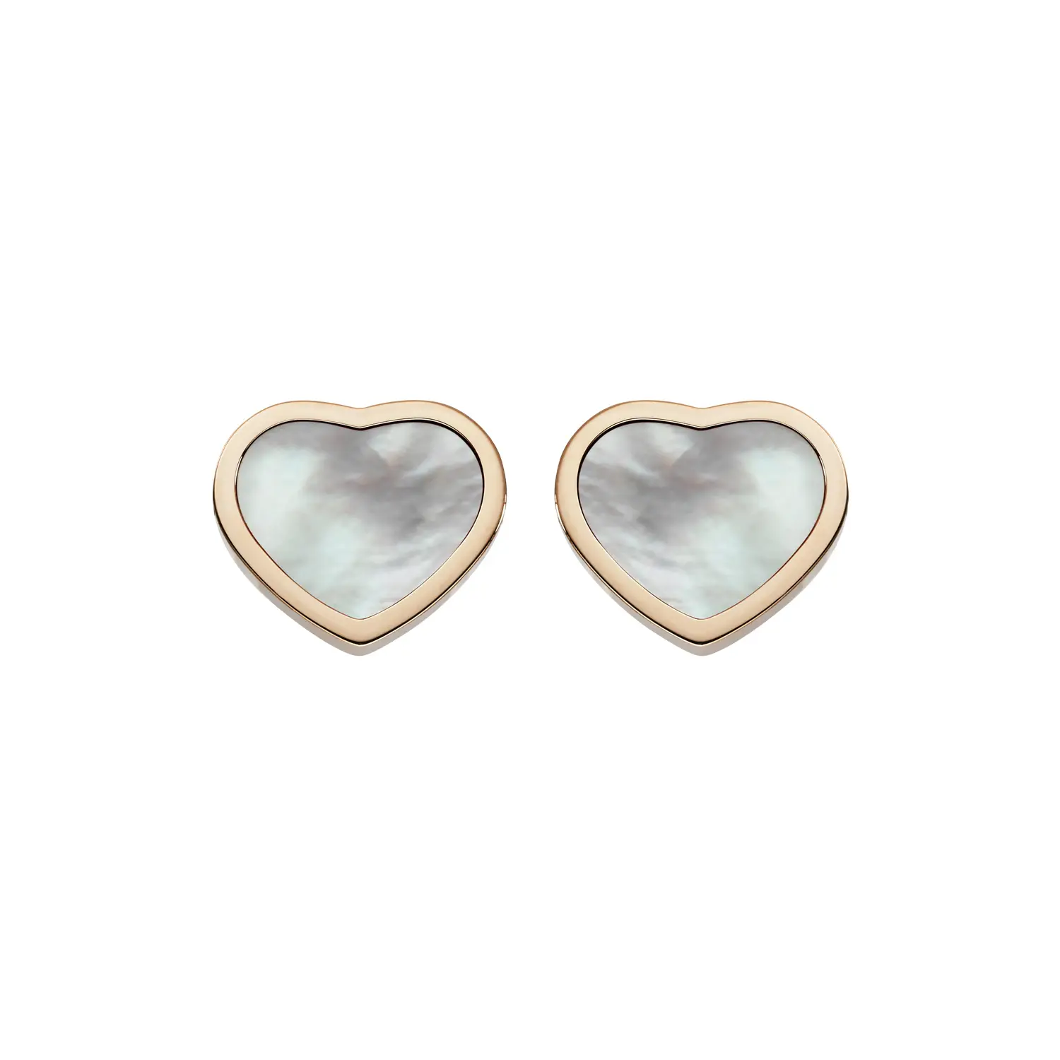 Đôi bông tai Chopard Happy Hearts 839482-5301 kết hợp giữa thiết kế lãng mạn và vẻ sang trọng tinh tế. Được chế tác từ vàng hồng 18k, bông tai được trang trí bằng hai trái tim làm từ xà cừ trắng, tỏa ánh sáng nhẹ nhàng, tượng trưng cho sự thuần khiết và nét nữ tính – chi tiết đặc trưng của bộ sưu tập Happy Hearts. Mỗi đường nét thể hiện niềm vui và phong thái thanh lịch đặc trưng của Chopard.