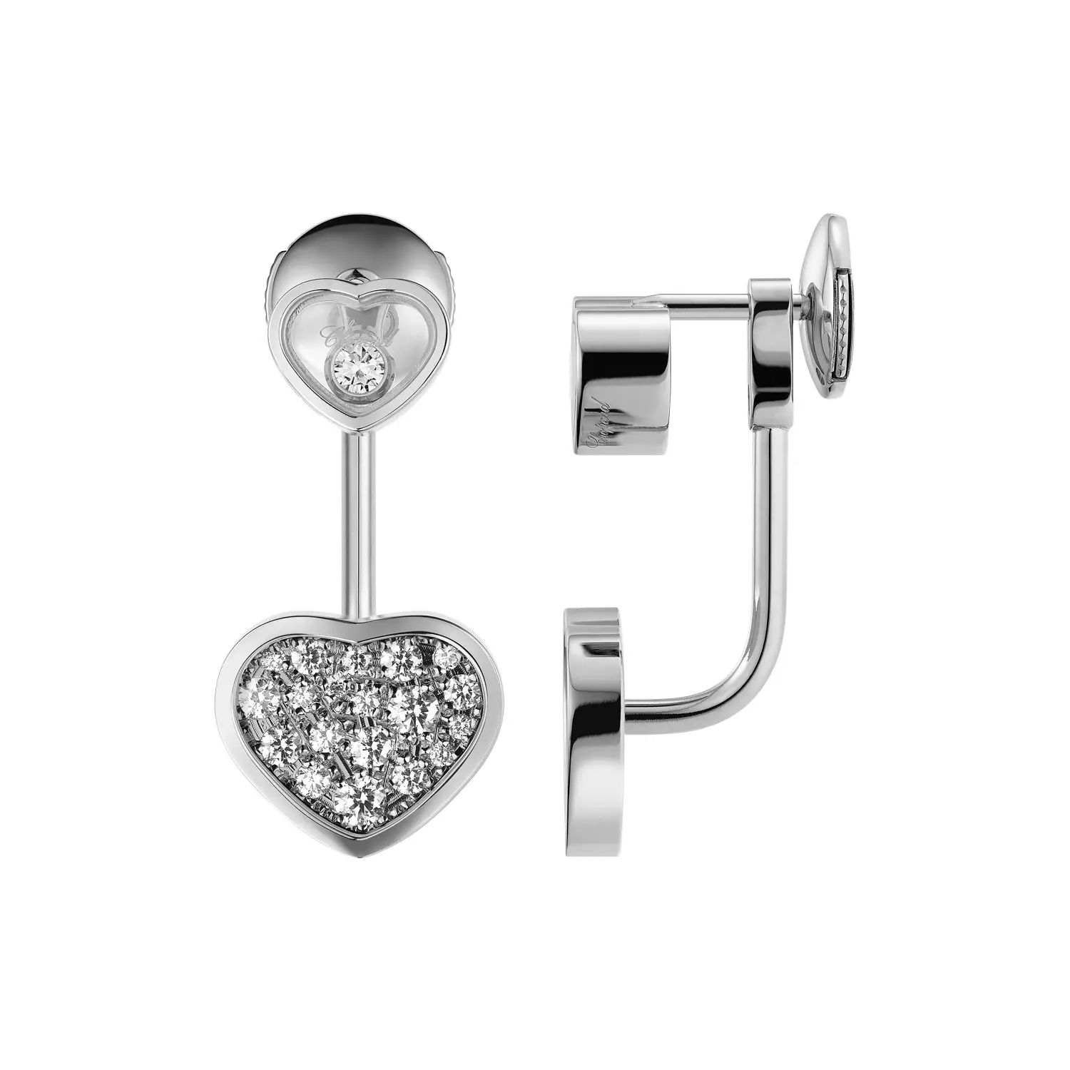 Đôi bông tai Chopard Happy Hearts 83A082-1009 thể hiện nét thanh lịch mang tính biểu tượng của Chopard ở dạng thuần khiết nhất. Được chế tác từ vàng trắng 18k, bông tai được đính những viên kim cương cắt tròn (tổng trọng lượng khoảng 0,44 ct) được sắp xếp thành hình trái tim – biểu tượng của tình yêu, niềm vui và hạnh phúc, đặc trưng của bộ sưu tập Happy Hearts.