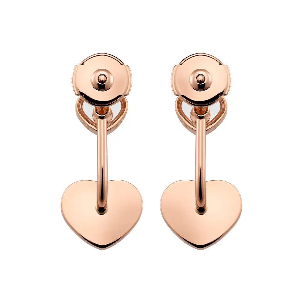 Chopard Happy Hearts 83A082-5801 là bông tai thả ngắn kết hợp họa tiết trái tim tinh nghịch với nét nữ tính dịu dàng. Chế tác từ vàng hồng 18kt (750/1000) với hoàn thiện đánh bóng; phong cách viên đá lớn giúp đôi bông tai nổi bật theo từng chuyển động. Khóa bướm (push-back) cho cảm giác đeo chắc chắn, thoải mái—phù hợp cả trang phục hằng ngày lẫn dịp trang trọng.